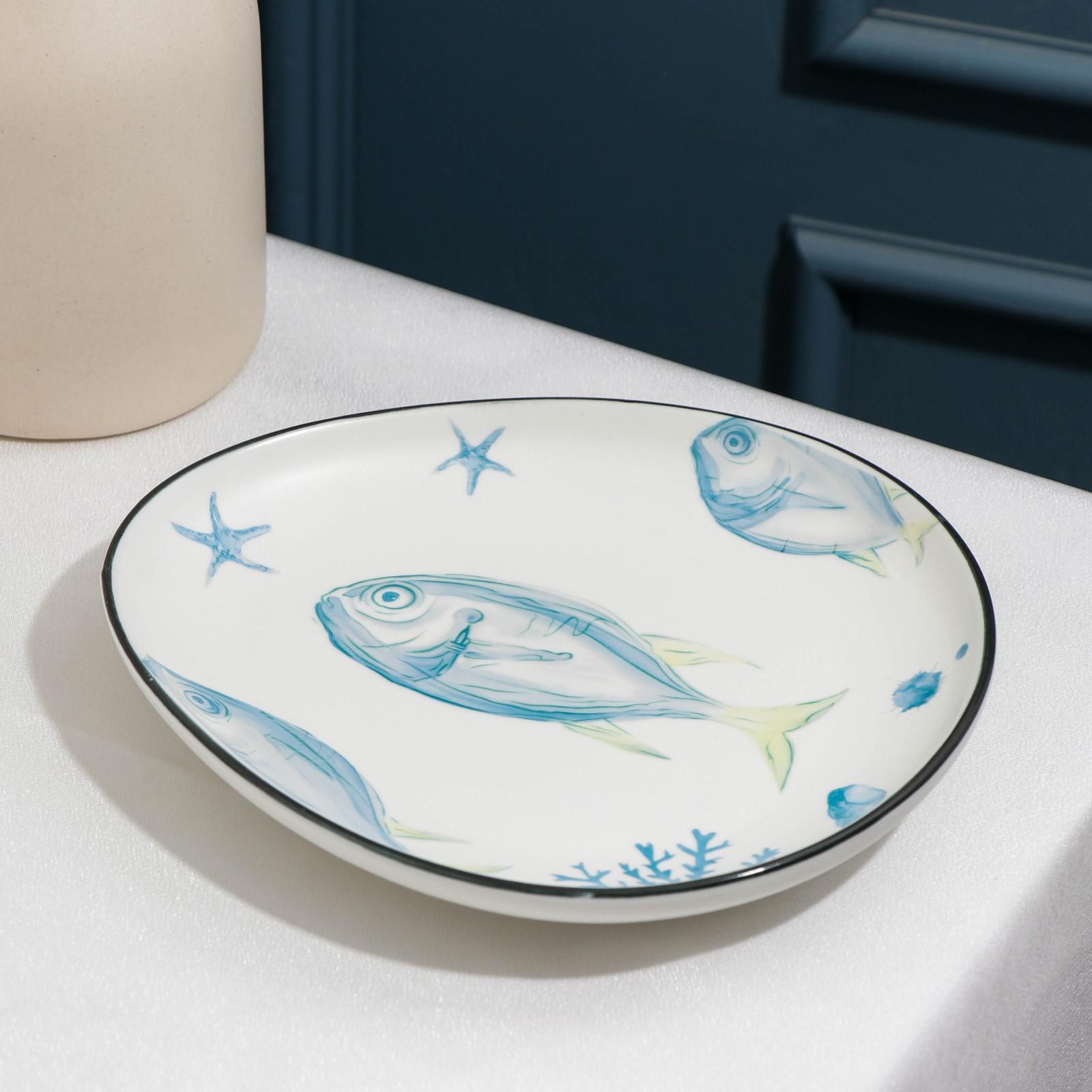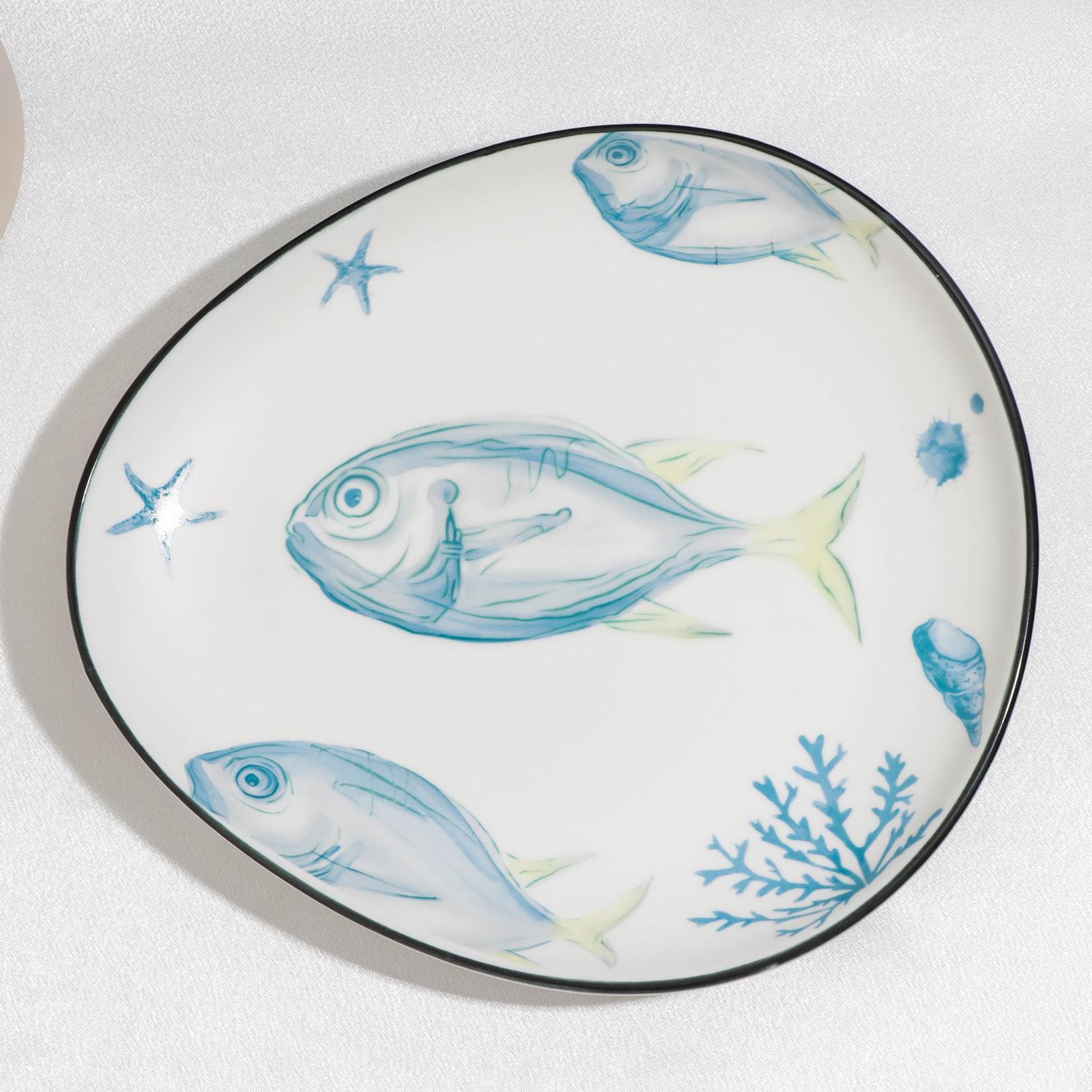 Блюдо керамическое сервировочное «подводный мир», 20x18,5x2,8 см