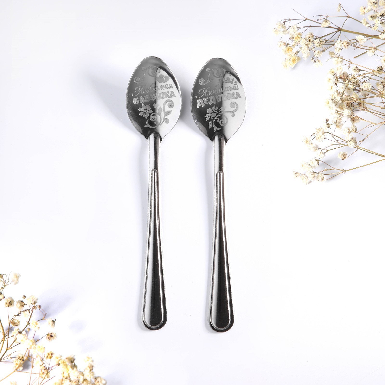 Набор ложек с гравировкой «бабушке и дедушке», 15,5 х 25,5 см.