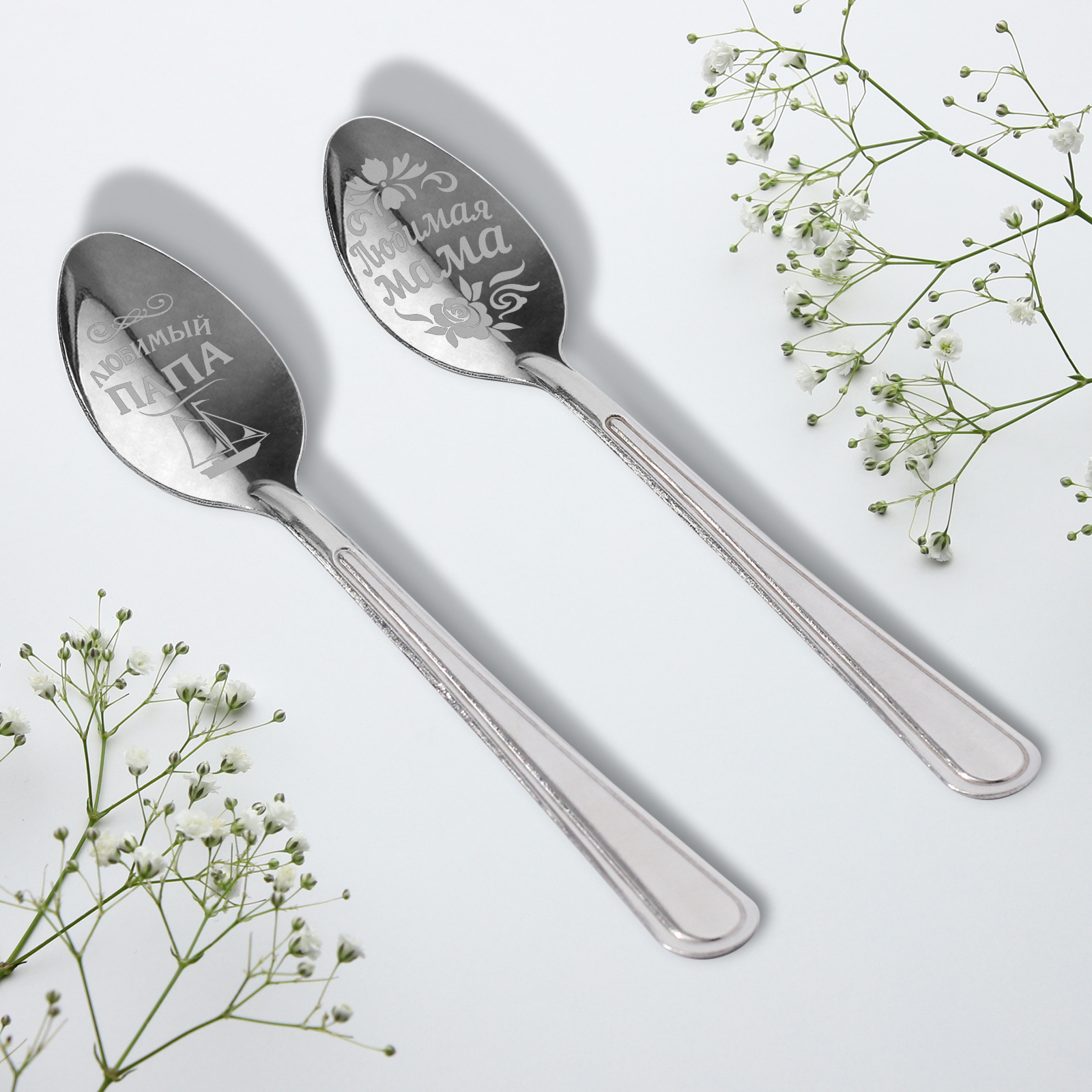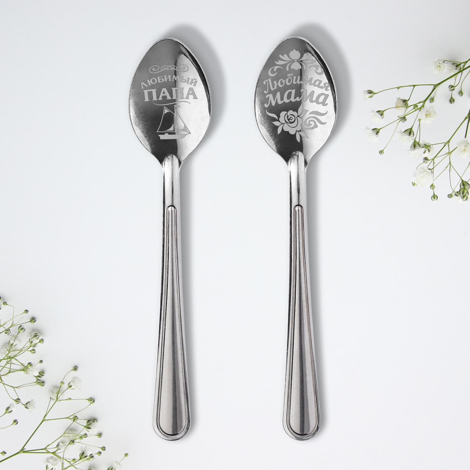 Набор ложек с гравировкой «мама и папа», 15,5 х 25,5 см.