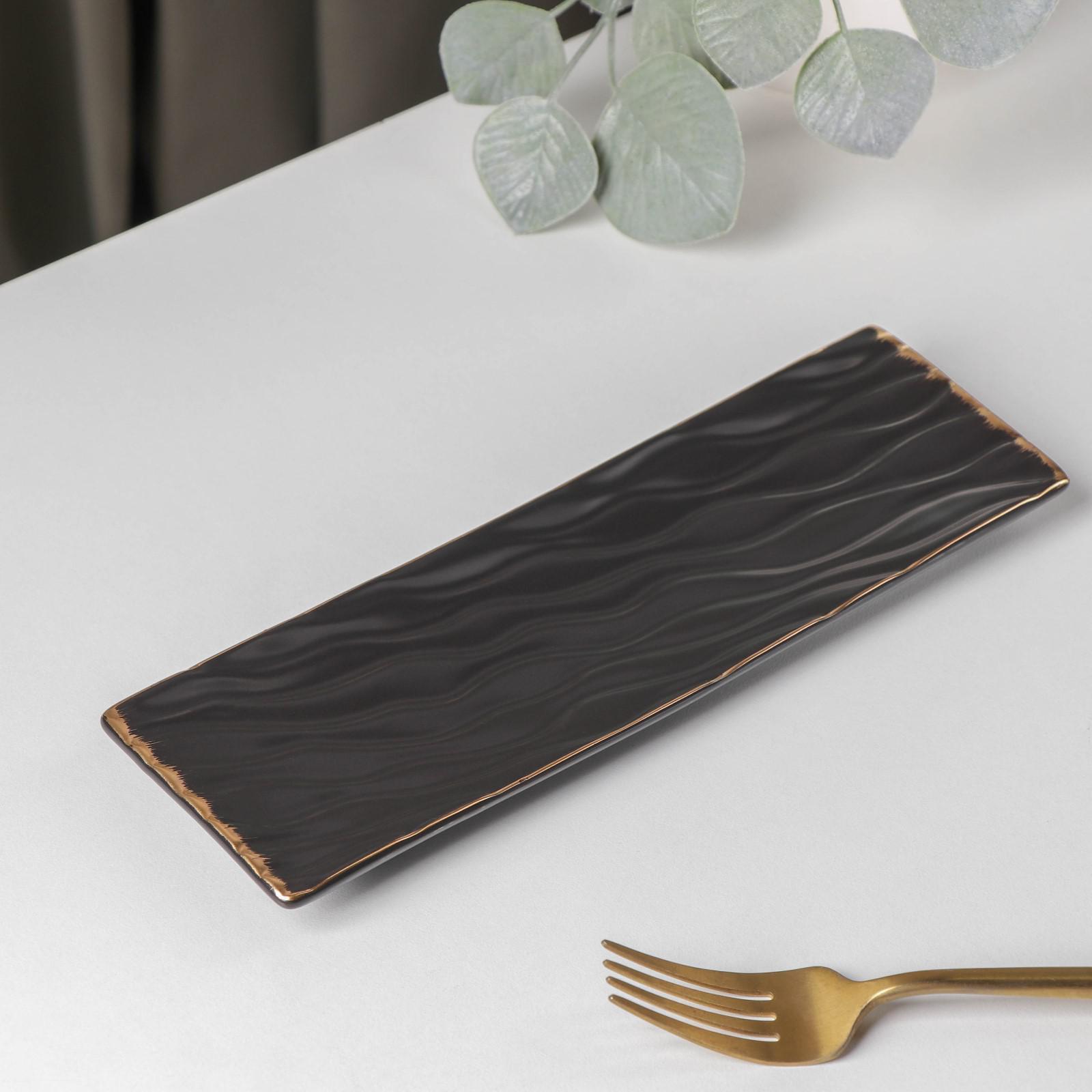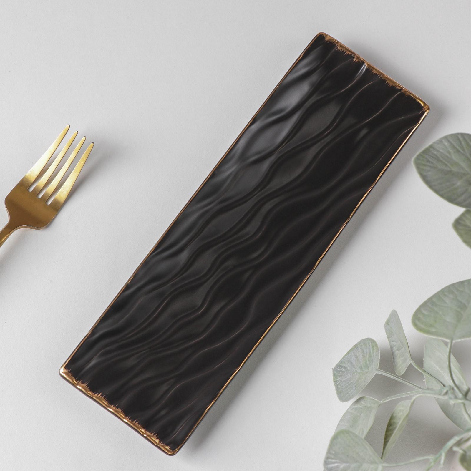Блюдо керамическое сервировочное «рапсодия», 24x7,5 см, цвет чёрный