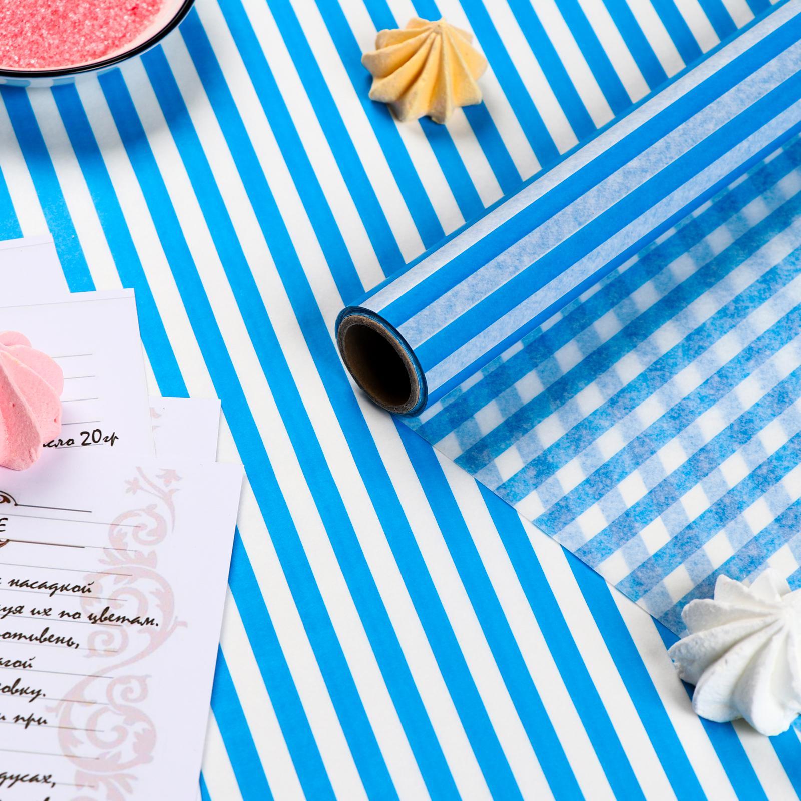 Бумага силиконизированная «полоски», голубые, для выпечки, 0,38 х 5 м