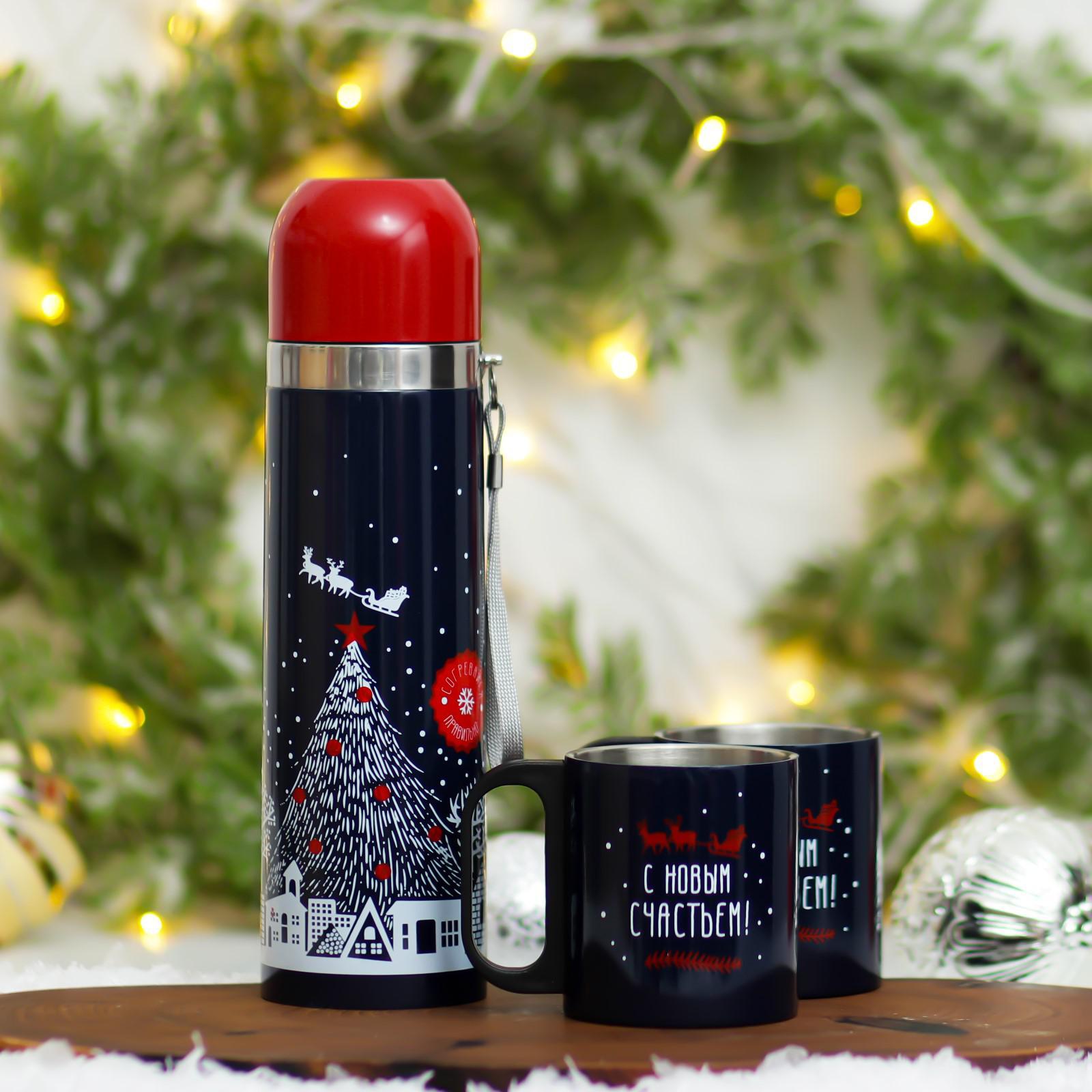 Подарочный набор «согревайся», термос, кружка 2 шт.