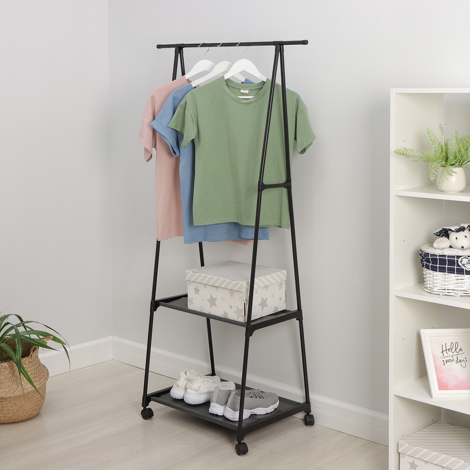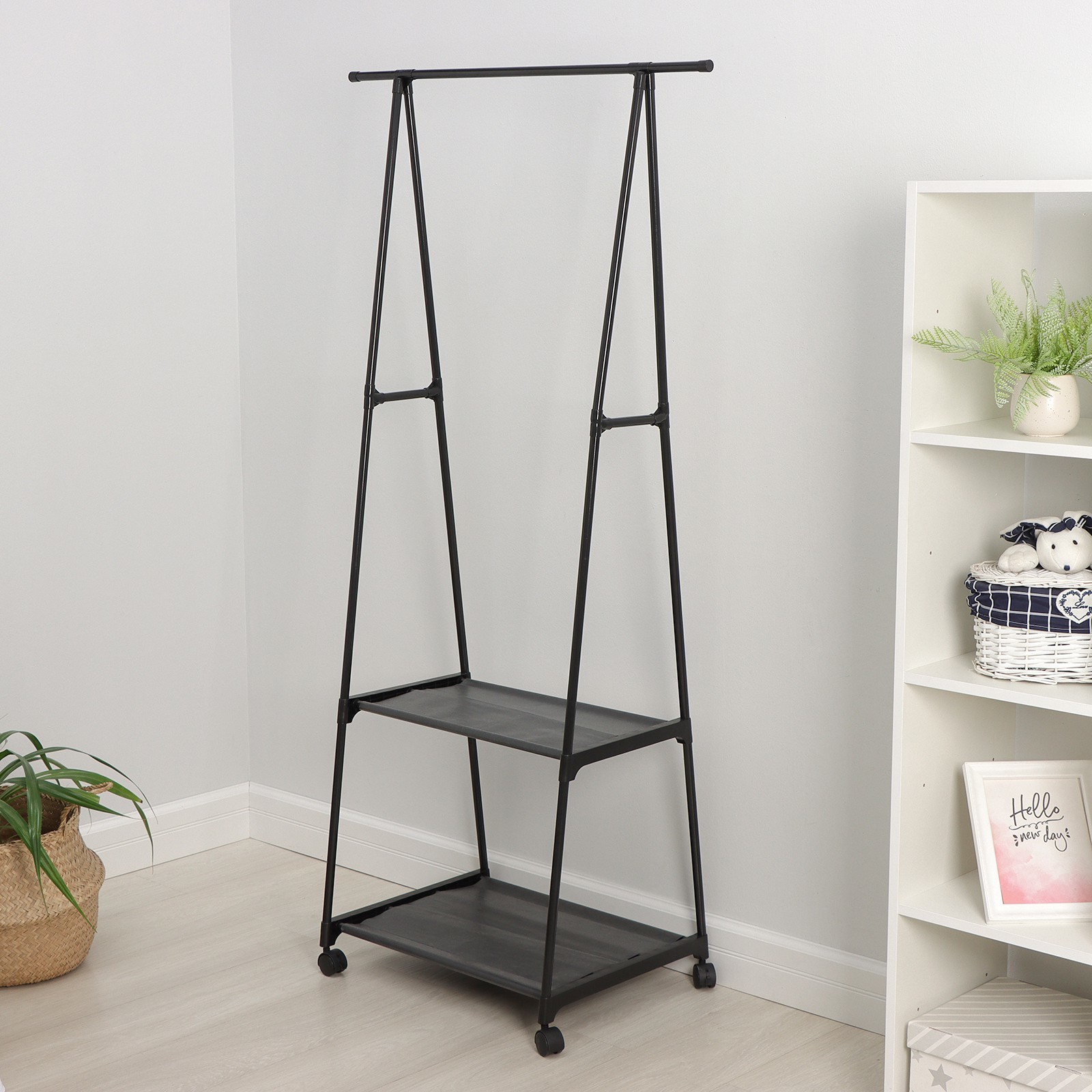 Array. Хотите как можно рациональнее и со вкусом использовать пространство в квартире. Отличным решением станет стойка для одежды. Перекладина имеет большую рабочую площадь и крепкое устойчивое основание. Преимущества: Готово к эксплуатации сразу после покупки и не требует дополнительных затрат. Является самостоятельным элементом интерьера. Очень мобильно. Отличается привлекательной ценой. Одежда быстрее сохнет и проветривается. Цвет: Чёрный Ширина, мм: 550 Глубина, мм: 45 Высота, см: 157 Высота, мм: 157 Количество полок: 2 На колёсиках: Да Цвет: Чёрный Материал: Металл Вид установки: Напольный С полочкой: Да Материал основания: Металл Услуга сборки: Нет Поставляется в разобранном виде: Да  развернуть описание ▼