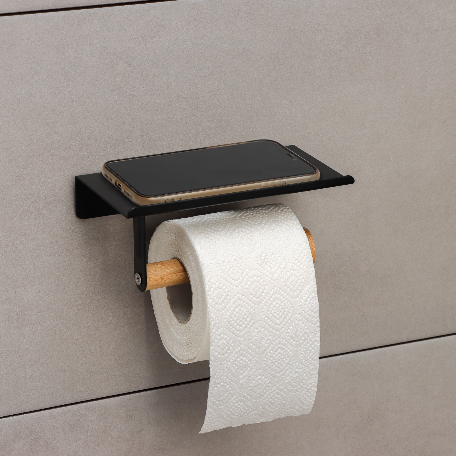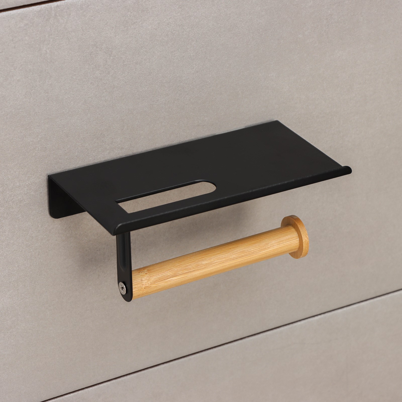 Держатель для туалетной бумаги с полочкой Bamboo, 18x9,7x7,5 см, цвет чёрный