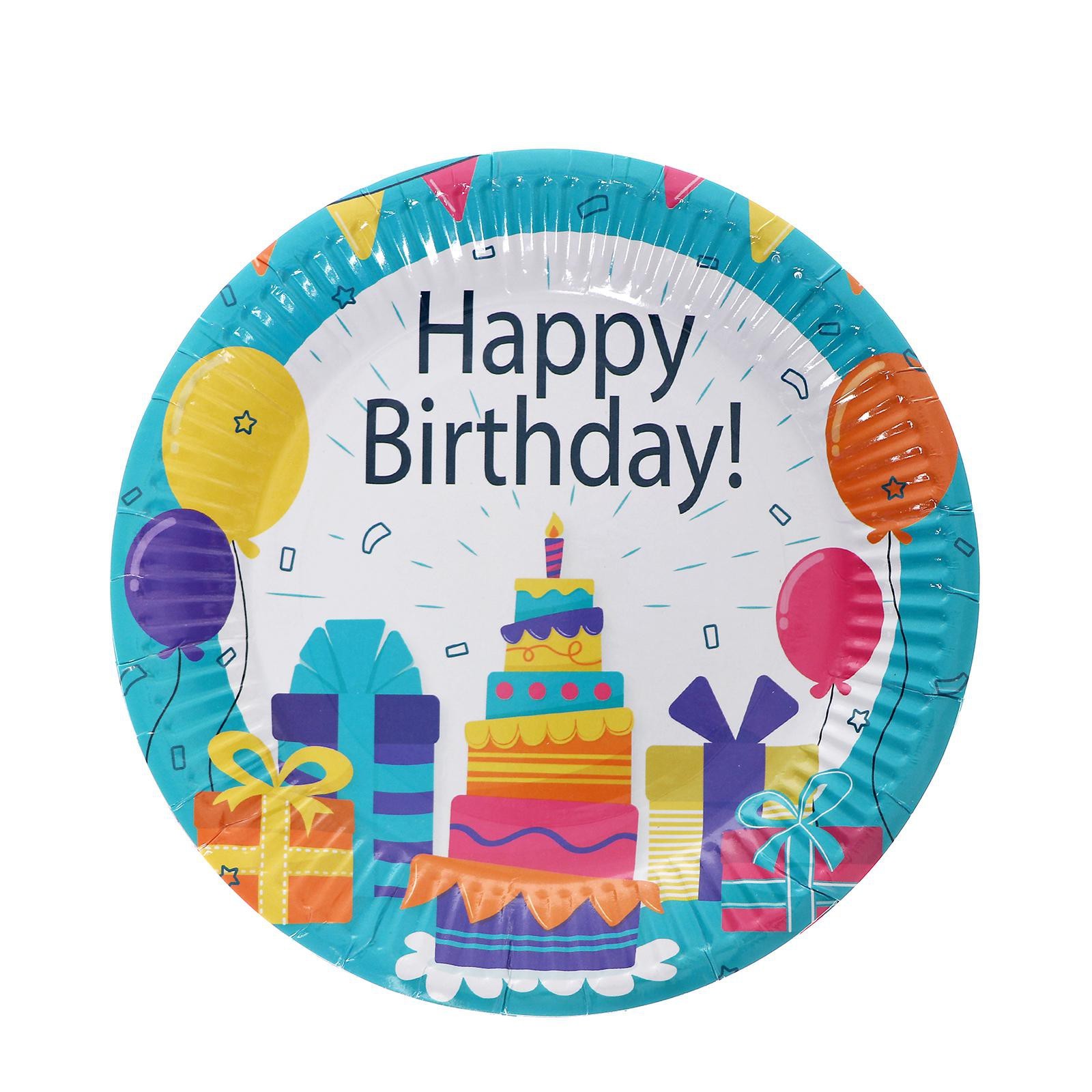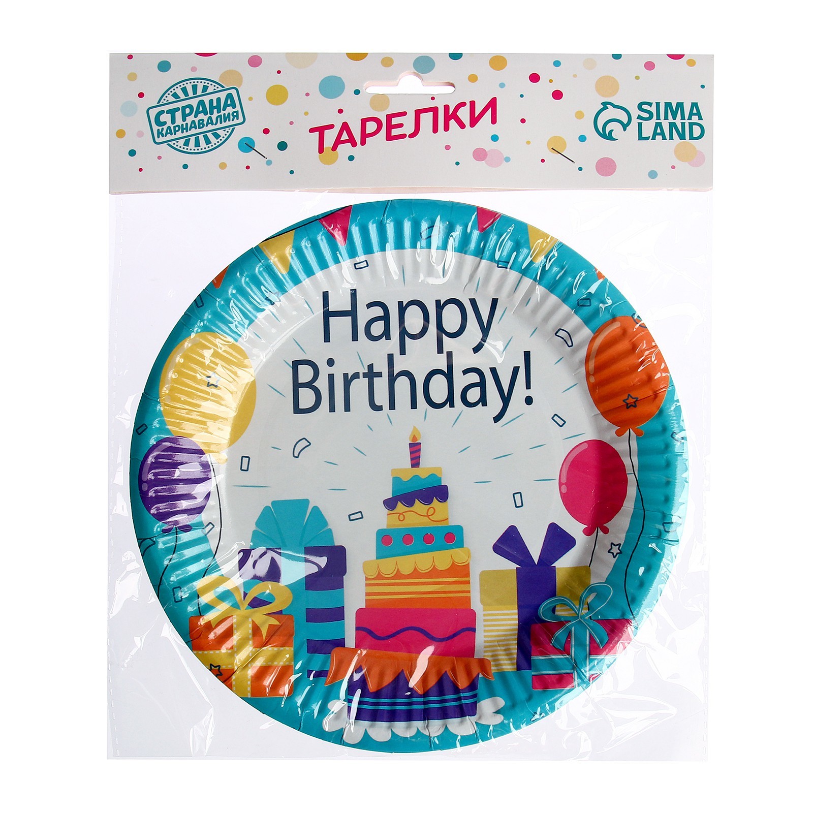 Тарелка бумажная «с днём рождения», подарки, набор 6 шт.