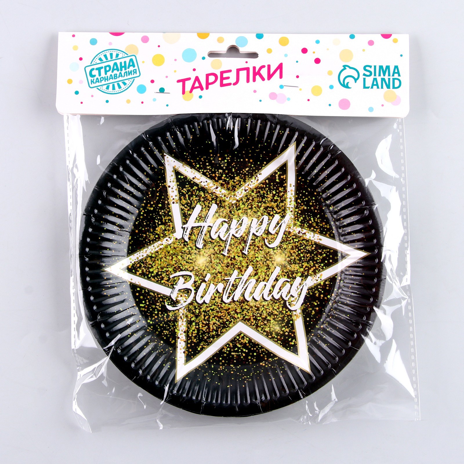 Тарелка бумажная «с днём рождения», звезда, набор 6 шт.