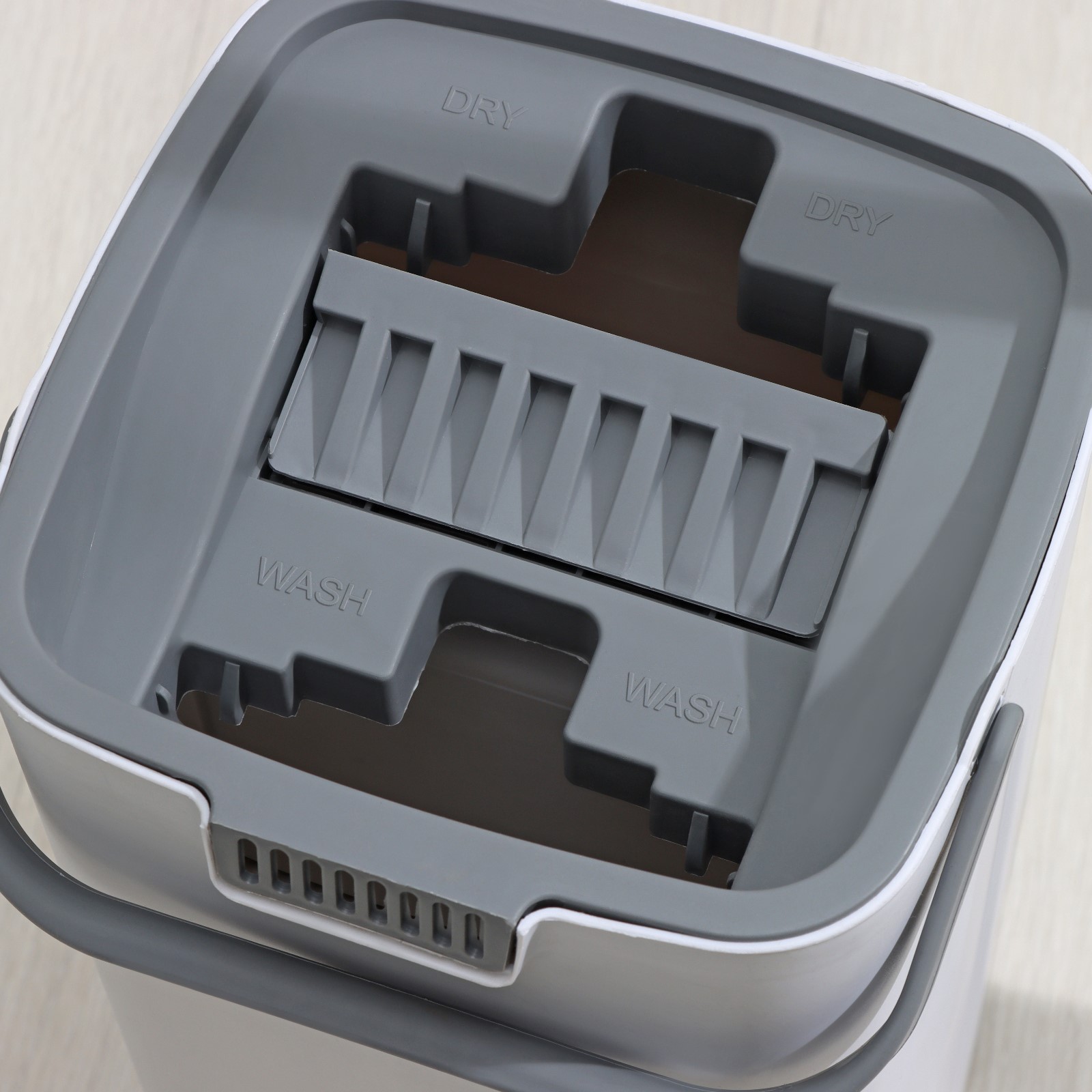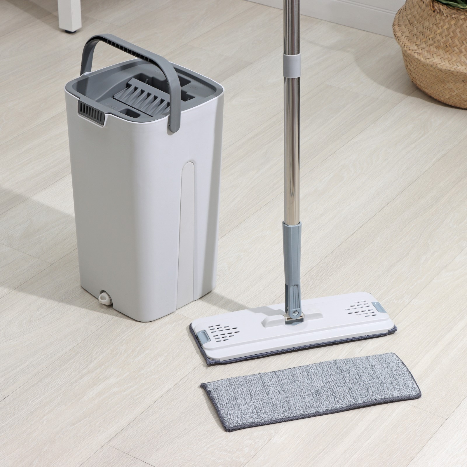Швабра с отжимом и ведро Raccoon: ведро с отсеками, швабра плоская, 2 кармана, 32x12x142 см, дополнительная насадка из микрофибр