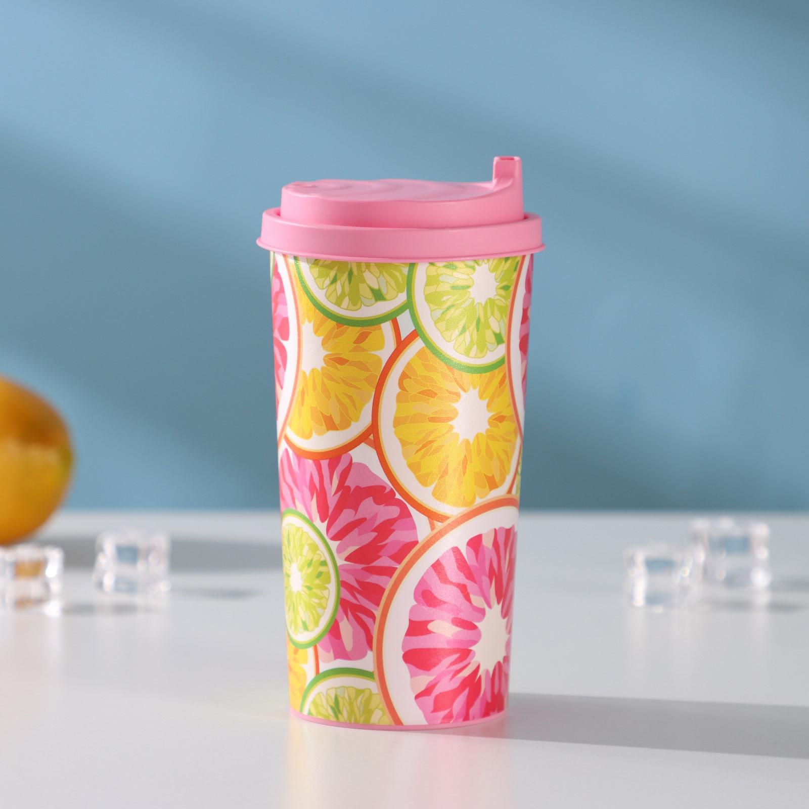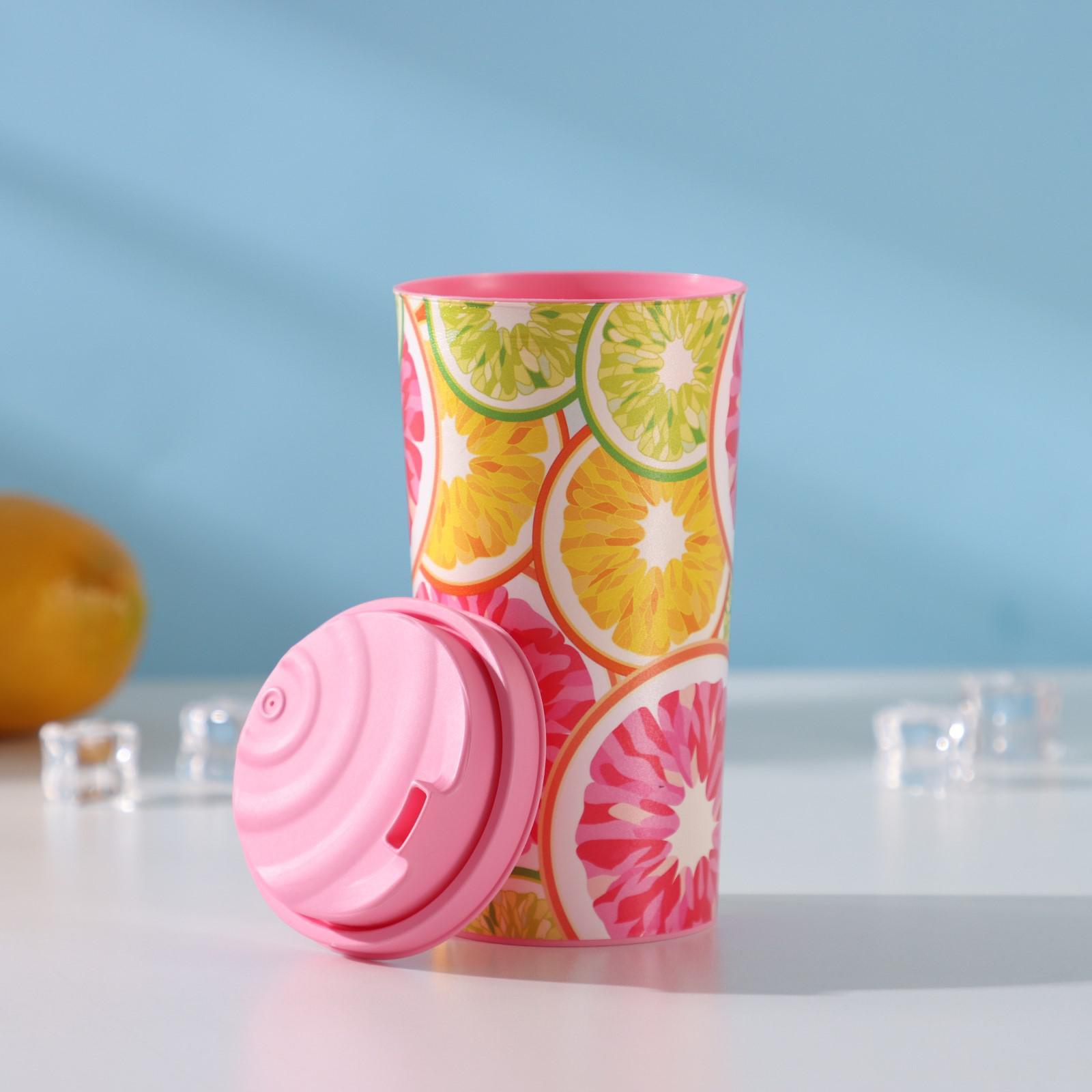 Стакан с крышкой пластиковый «цитрус», 470 мл