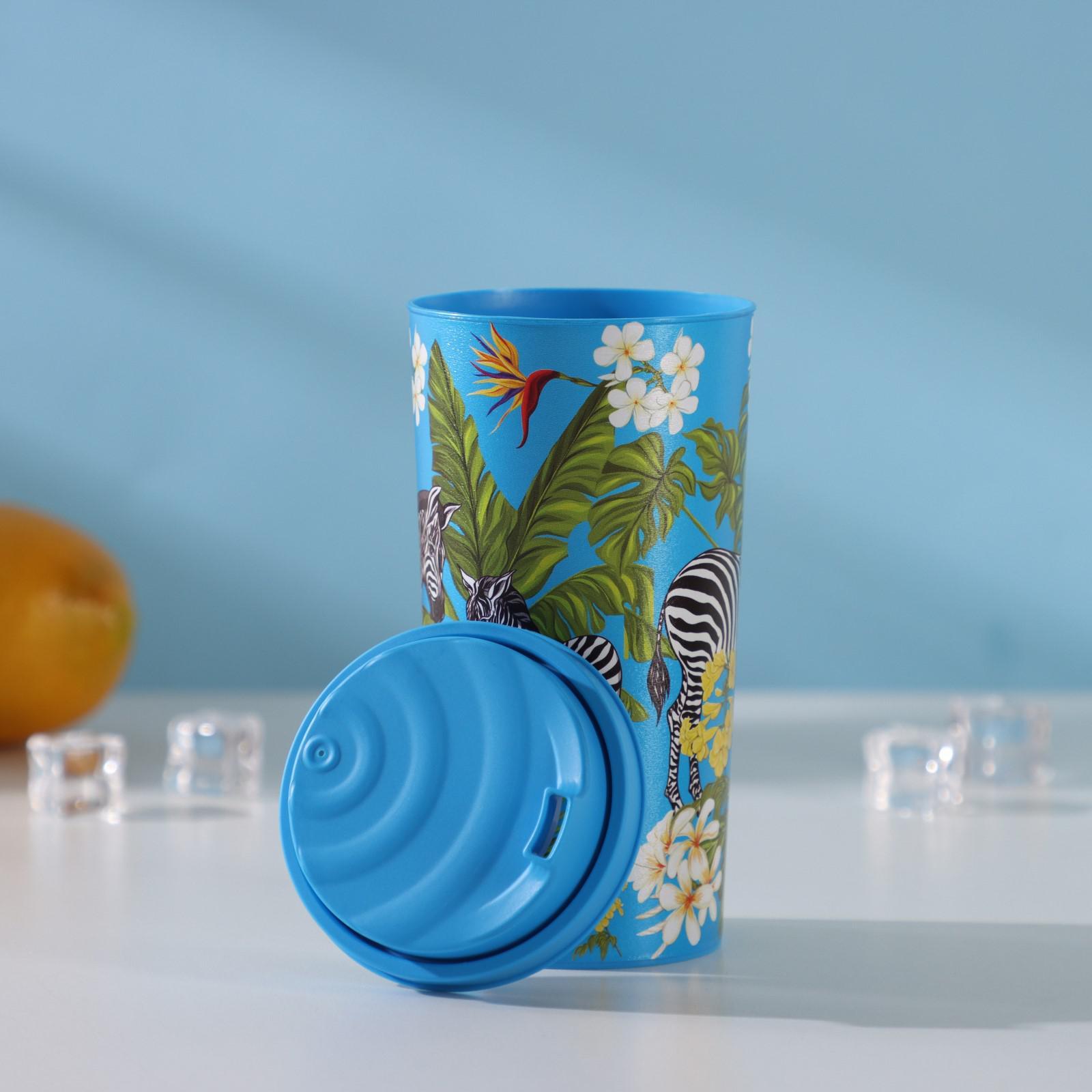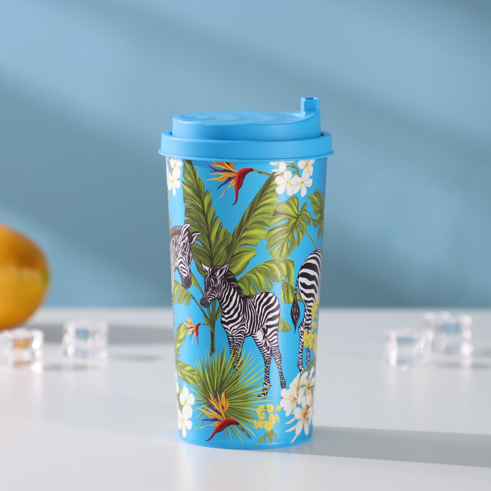 Стакан с крышкой пластиковый «зебра», 470 мл