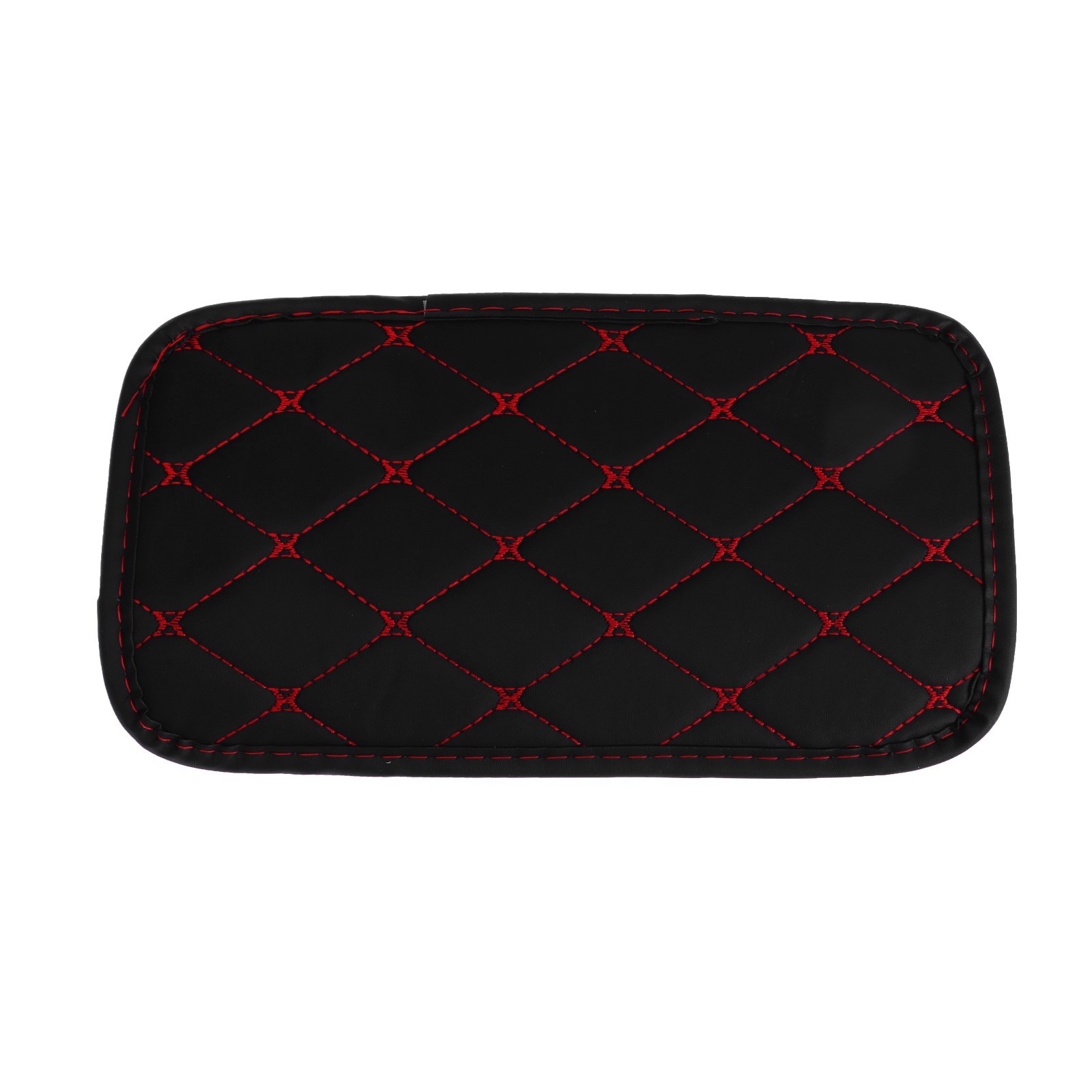 Коврик на подлокотник 29 19, экокожа, черный с красной строчкой