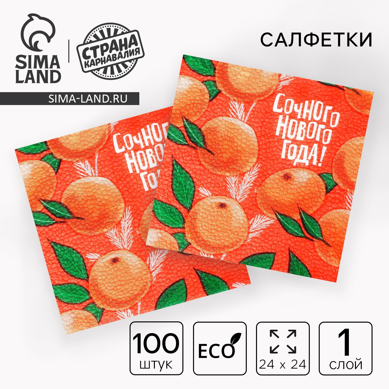 Салфетки бумажные новогодние «сочного нового года», 24 см., набор 100 шт.