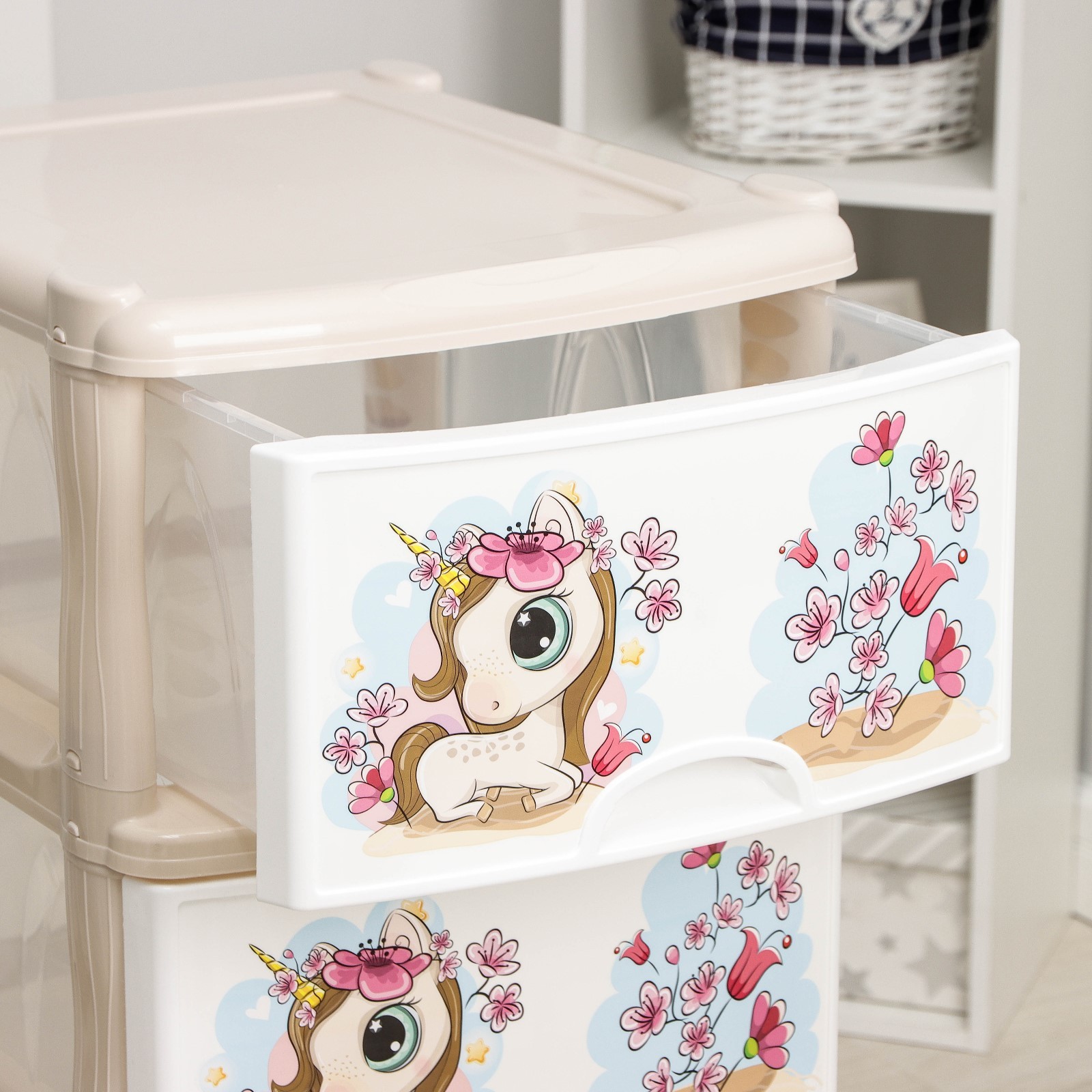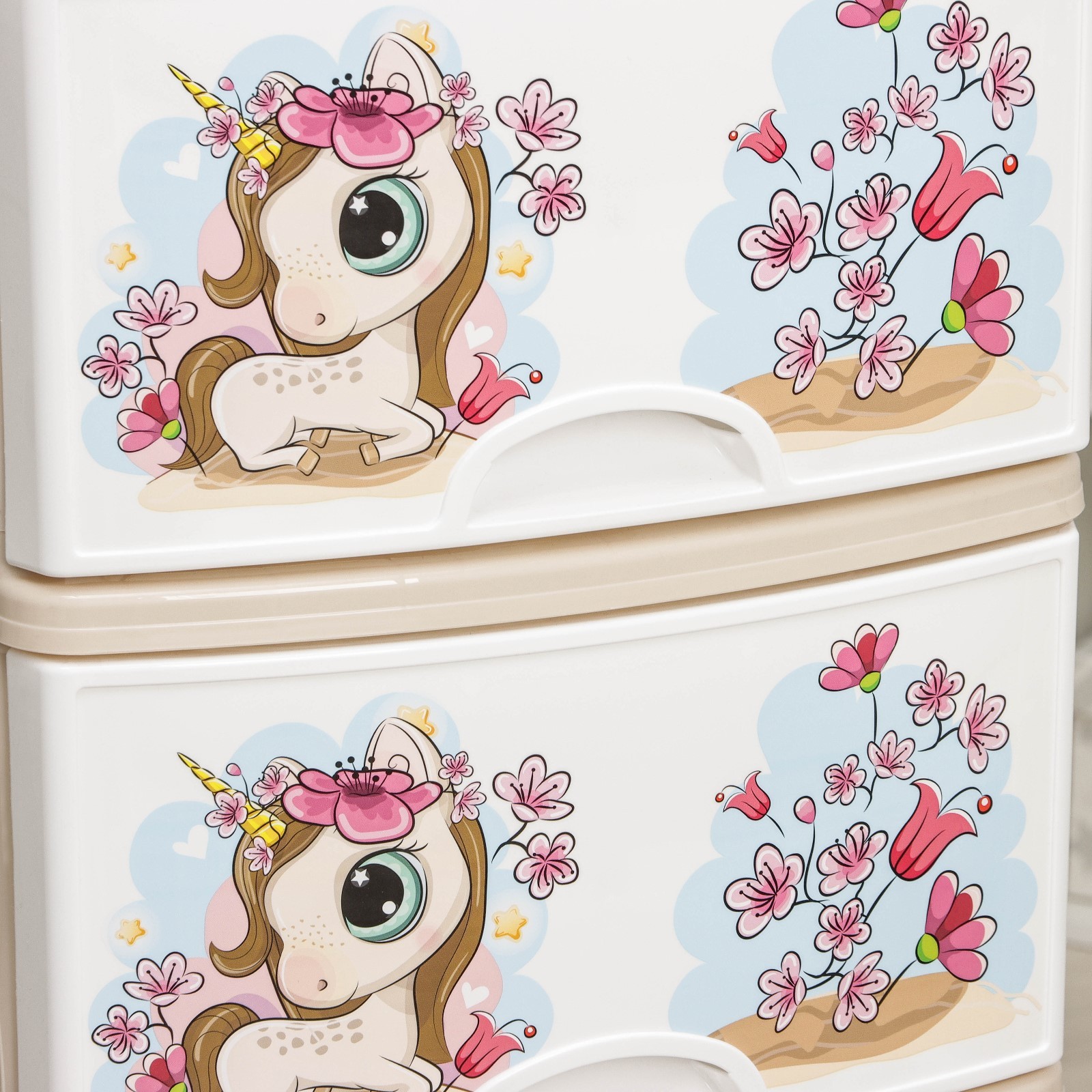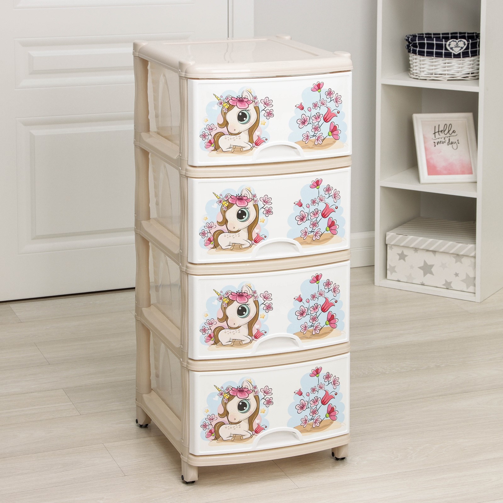 Комод 4-х секционный на колесиках «сказочное королевство», цвет и рисунок микс