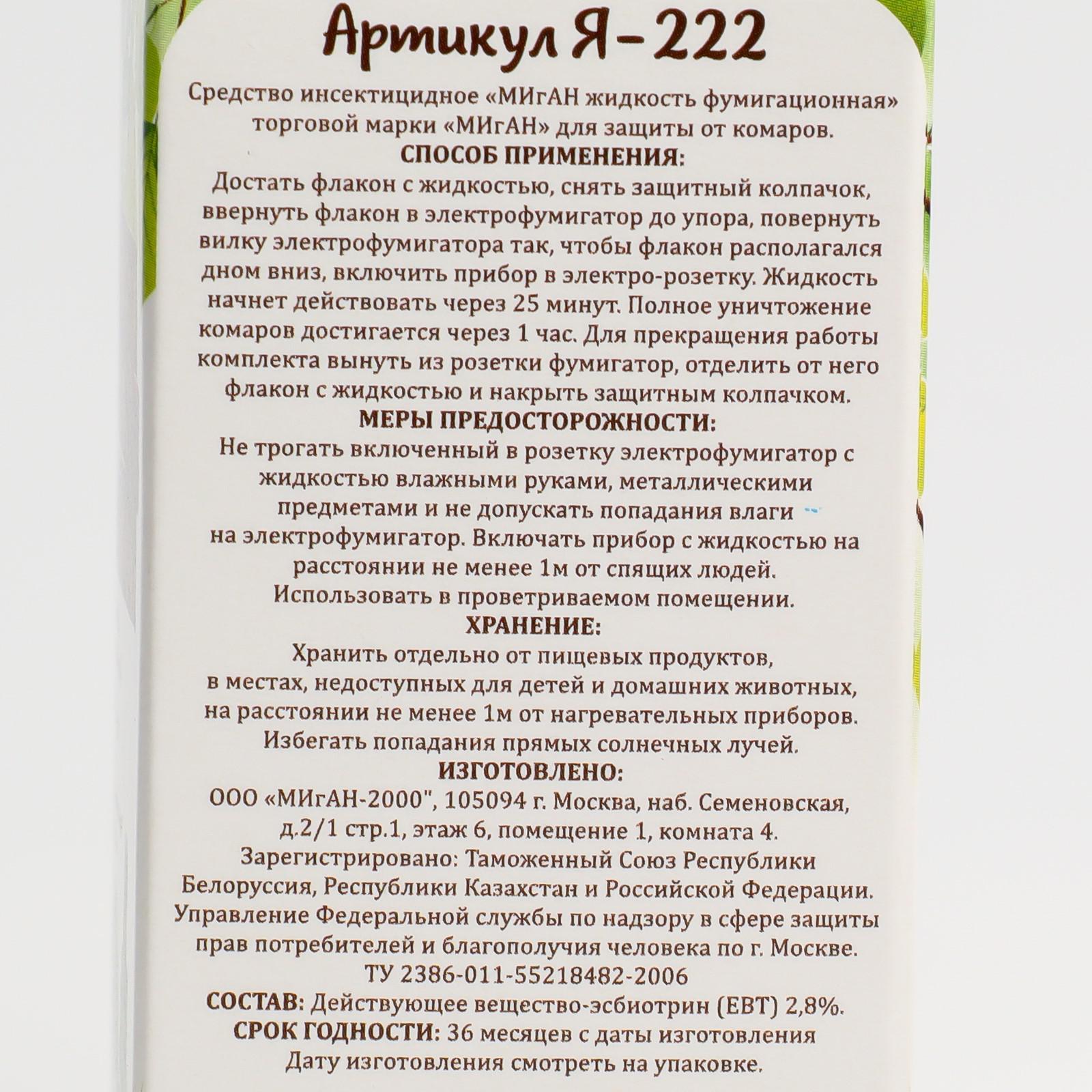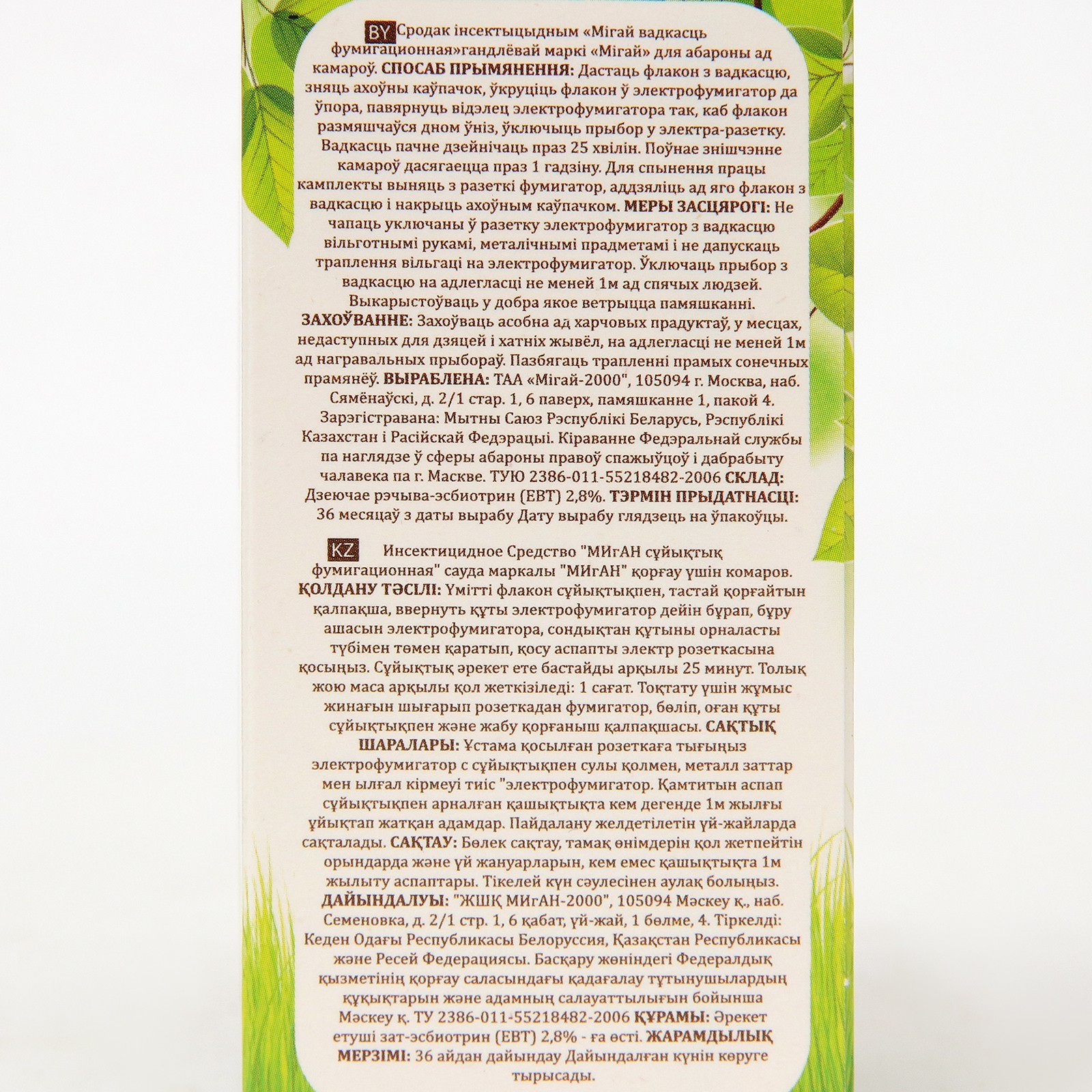 Дополнительный флакон-жидкость "Migan", от комаров, 45 ночей, без запаха, 30 мл