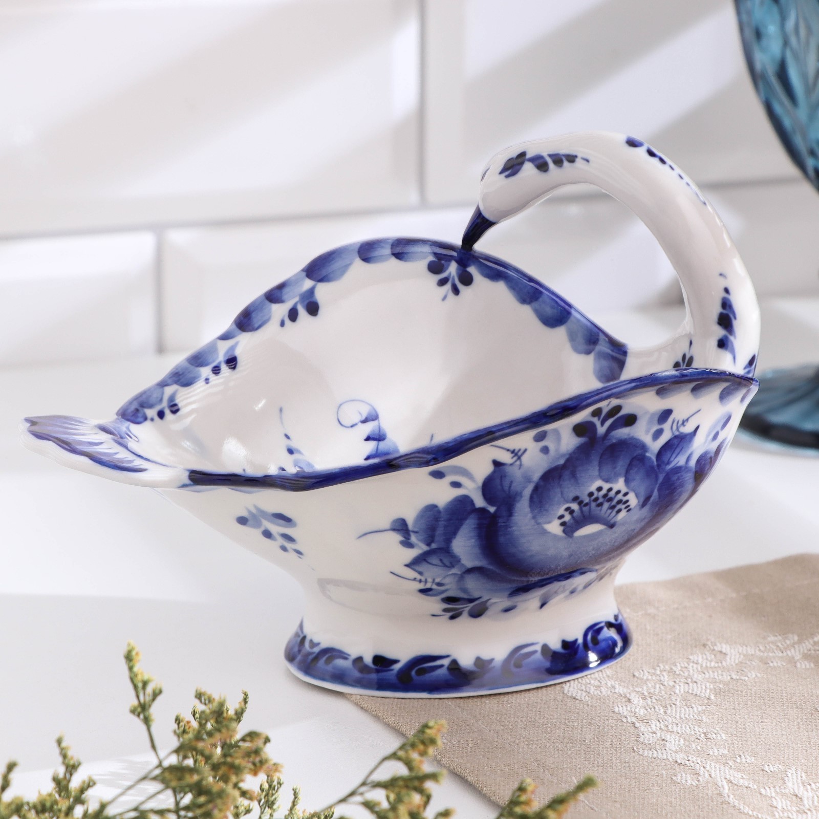 Конфетница «лебедь», 18х15х12 см, гжель