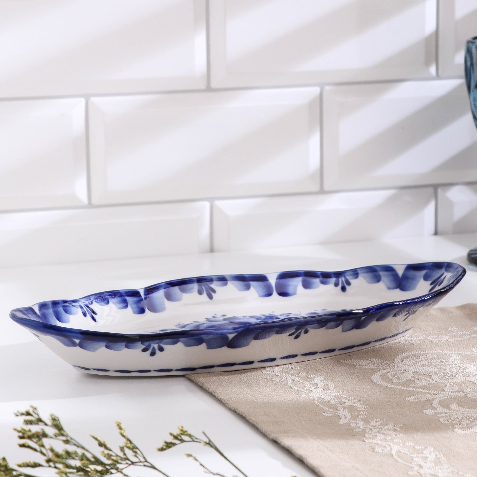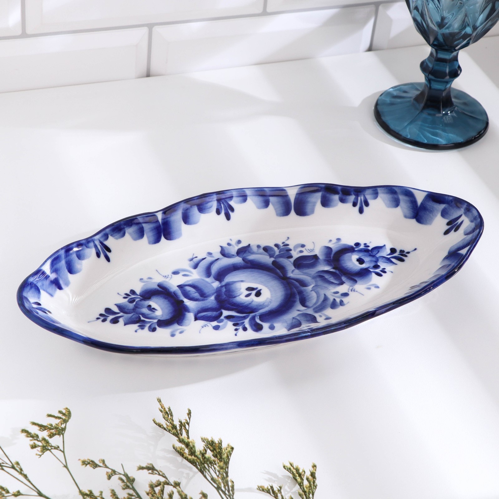 Блюдо «селедочница», 28,5х13,5х4 см, гжель