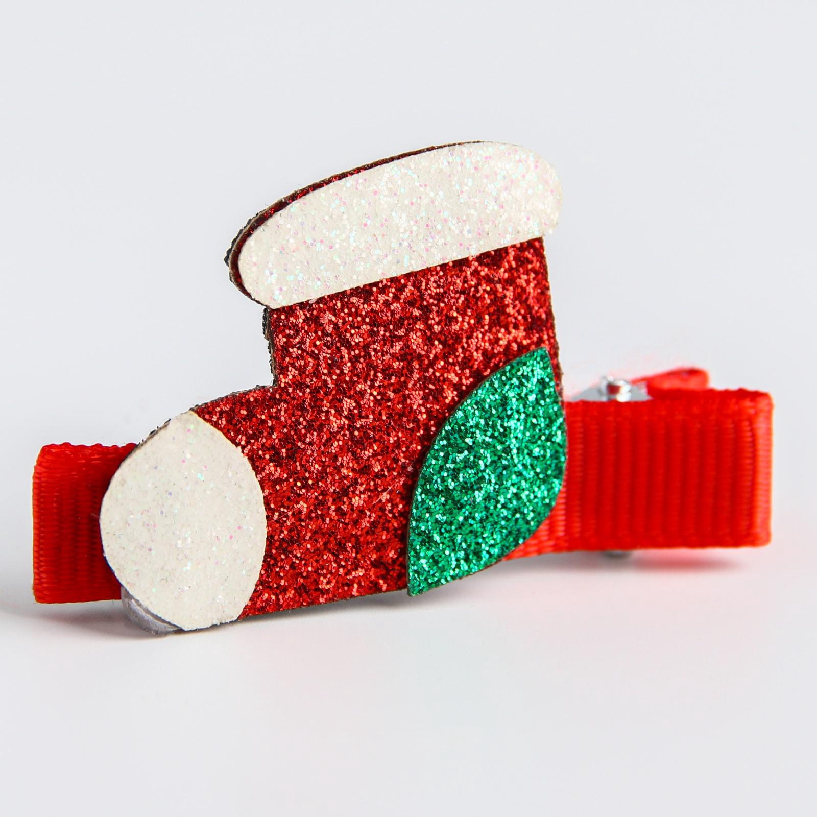 Заколка для волос «с новым годом». Набор:Нет|Цвет:Красный|Для кого:Для девочки|Длина, см:3.5|Символ года:Нет|Тематика праздника:Новый год|Материал:Пластик|Тип:Зажим|Страна:Китай