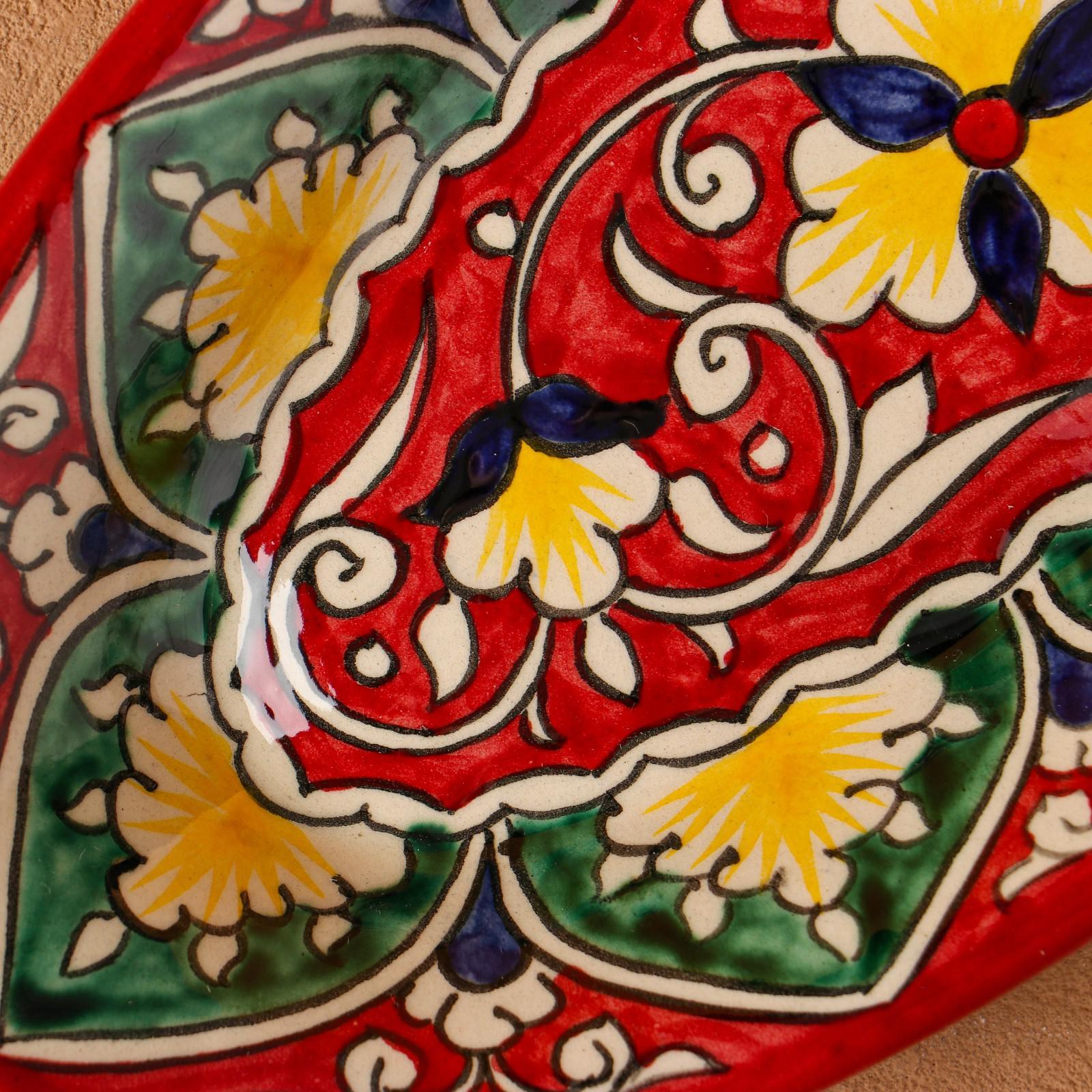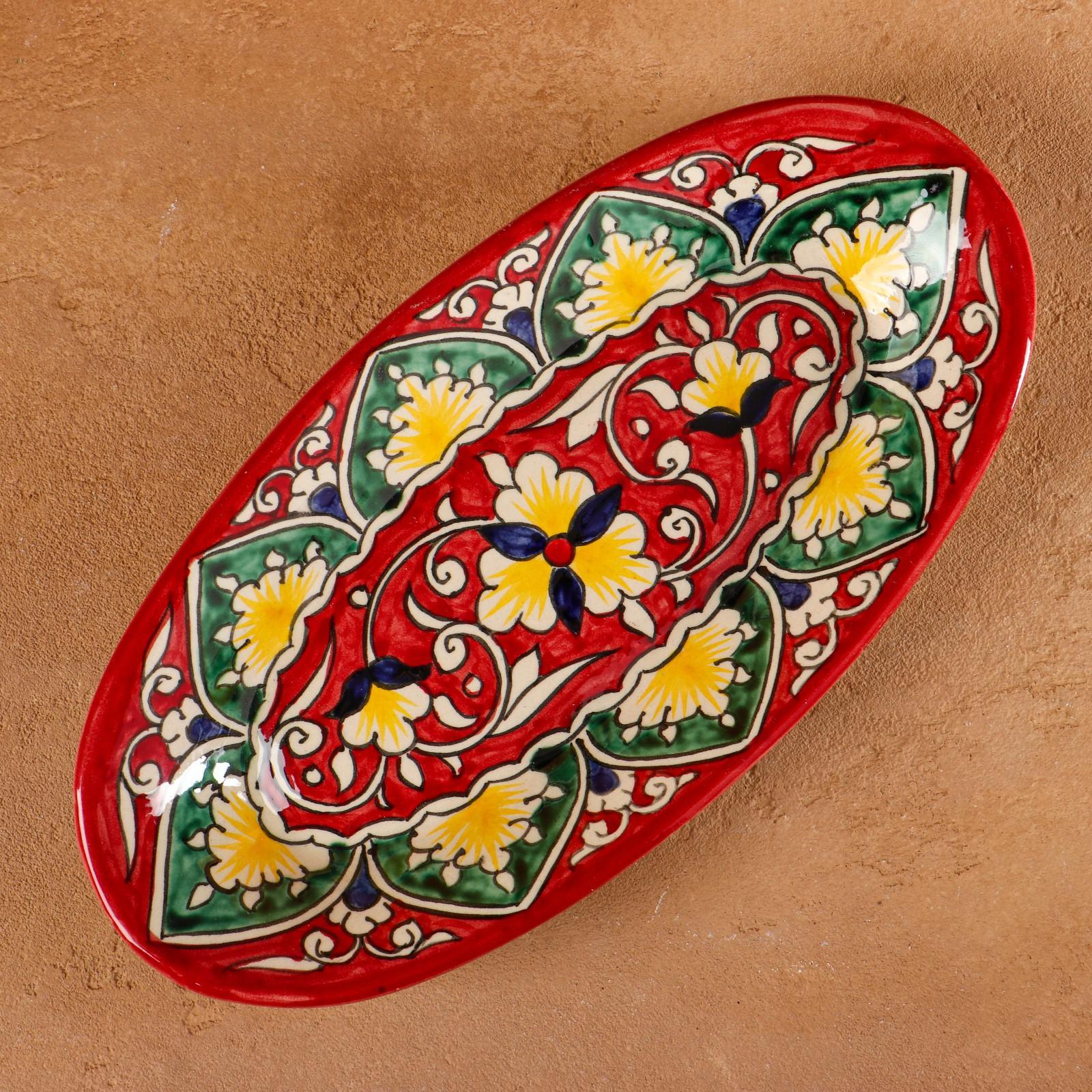 Селёдочница риштанская керамика "цветы", 24 см, красная, микс