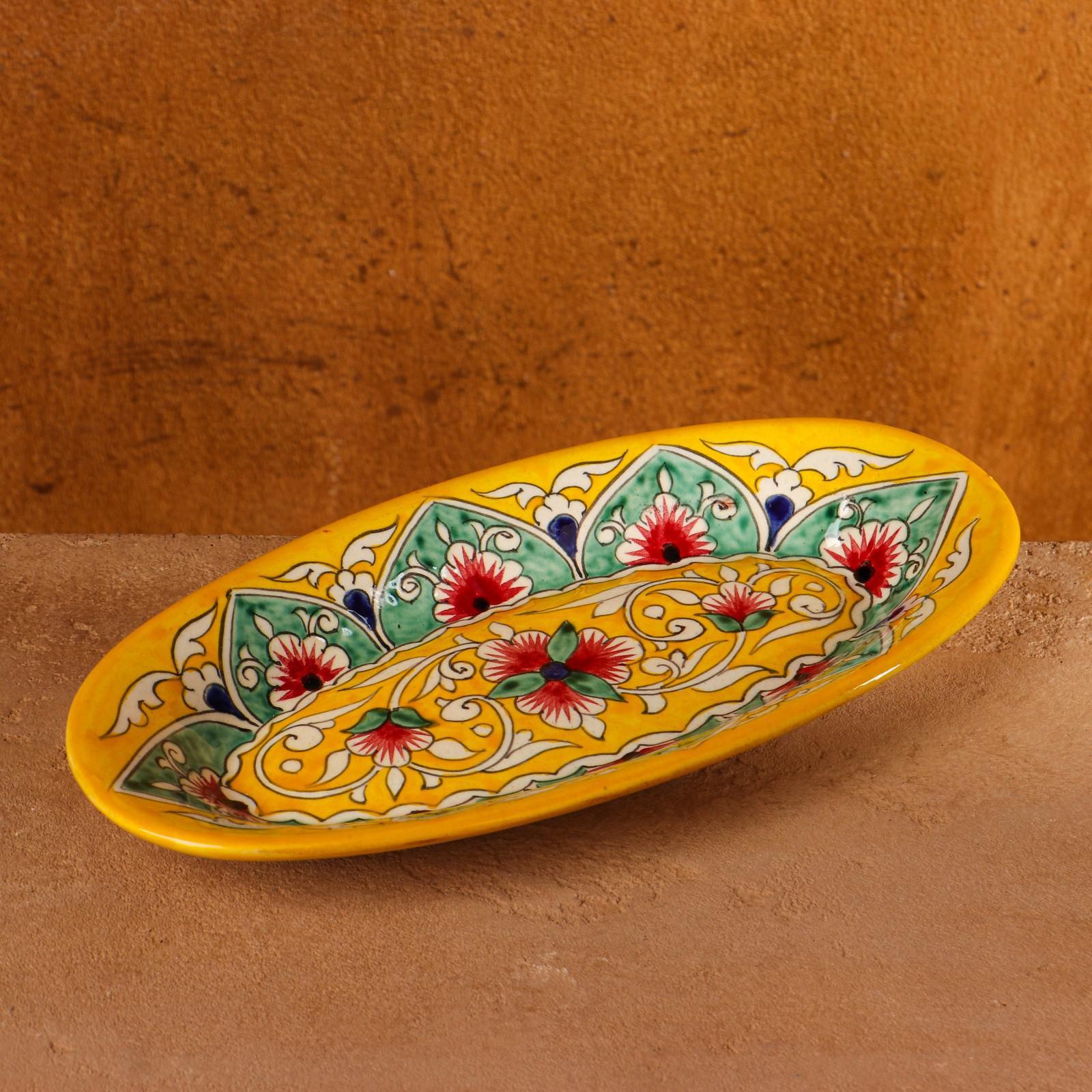 Селёдочница риштанская керамика "цветы", 24 см, жёлтая, микс