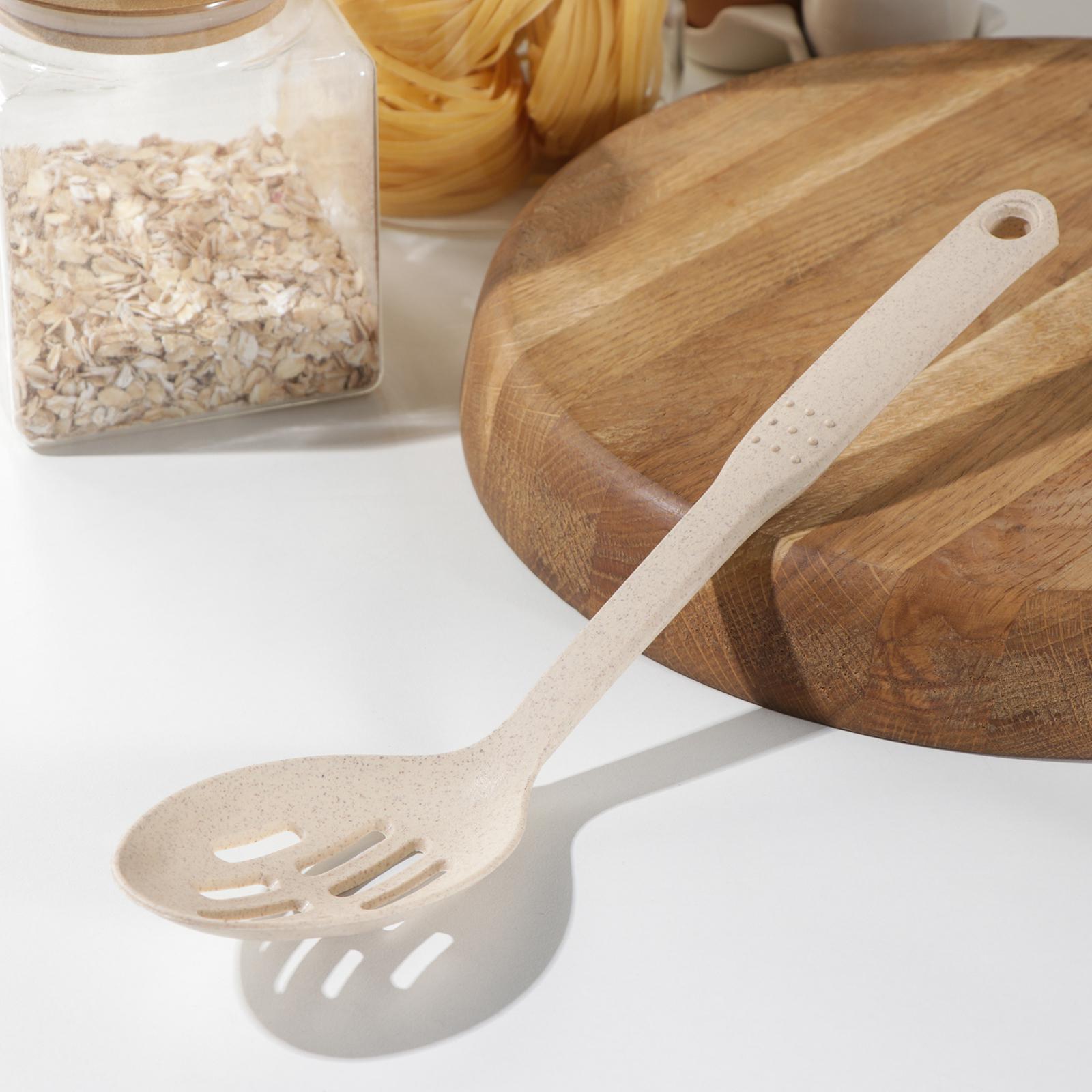 Ложка с прорезями доляна «беж», 28,5x6,2 см, цвет бежевый