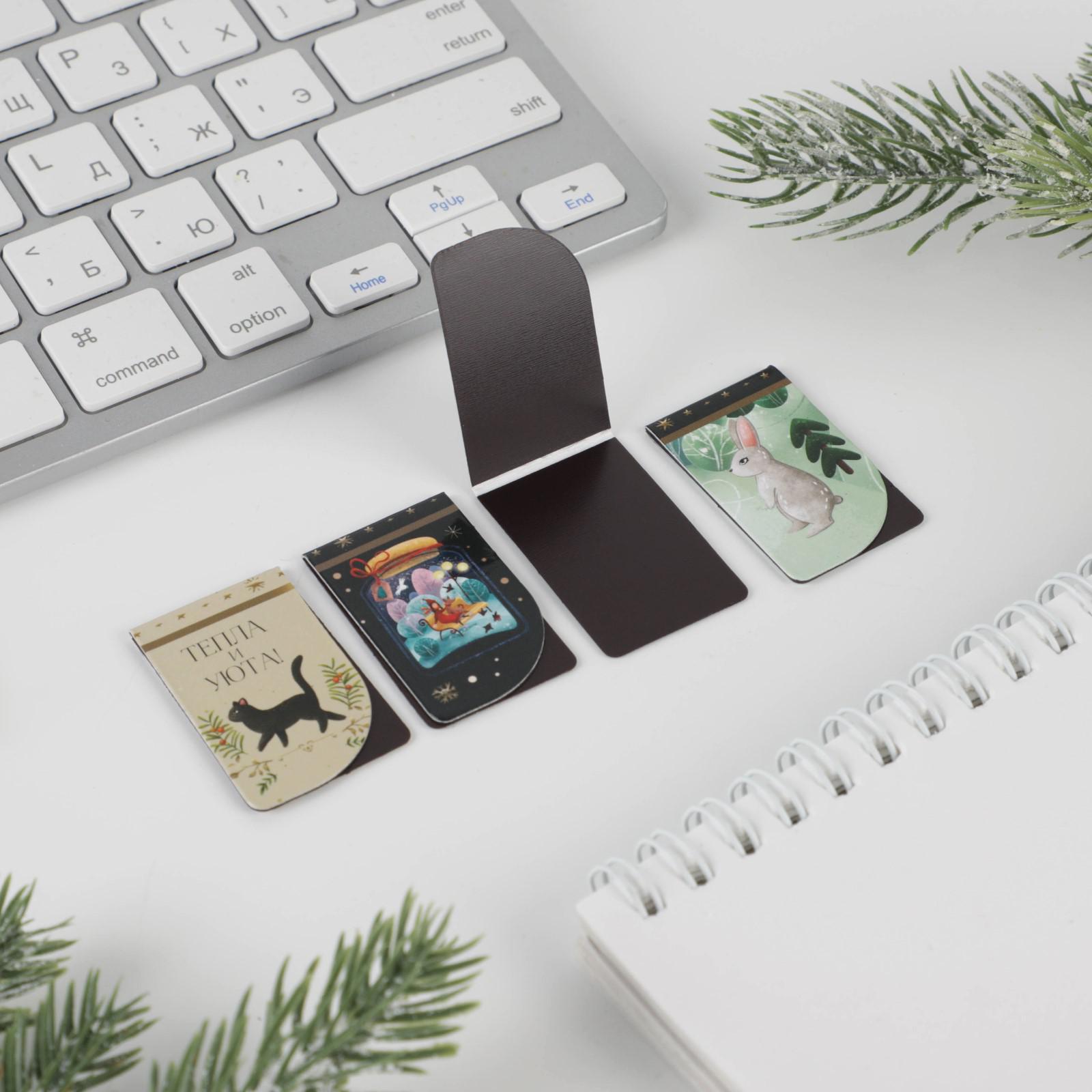 Магнитные закладки для книг, 4 шт., мини «с новым годом». Магнитные закладки станут прекрасным подарком на праздник. Отделка: глянцевая ламинацияВид упаковки: пакет;В упаковке, шт.: 4;Состав: магнит, картон. Набор:Да|Длина, см:3.5|В упаковке, шт.:4|Тематика:Новогодняя|Вид упаковки:Подложка|Символ года:Нет|Тематика праздника:Новый год|Материал:Магнит|Вид закладки:Магнитные|Страна:Россия  развернуть описание ▼