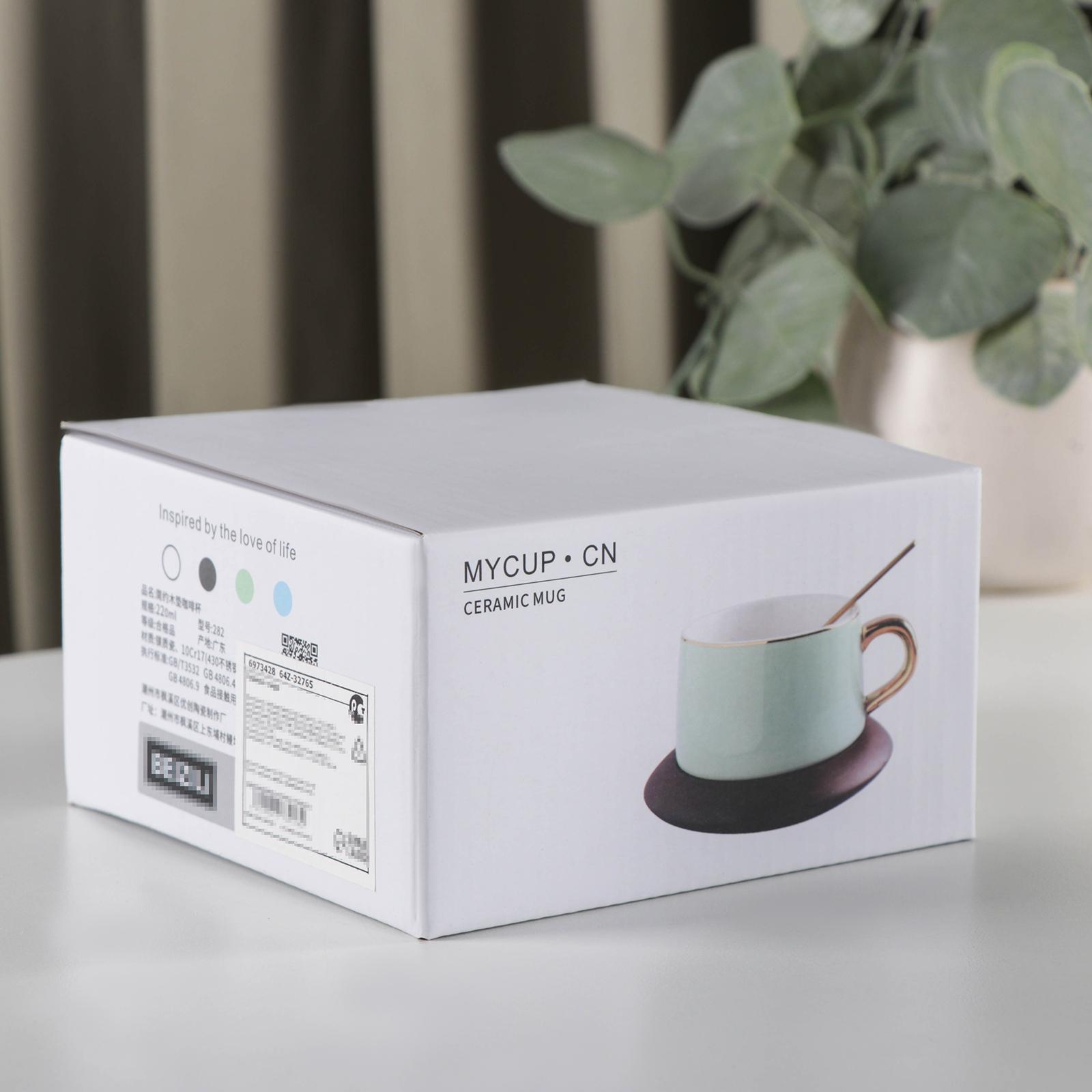 Чайная пара керамическая с ложкой «улун», 2 предмета: чашка 280 мл, блюдце D=13 см, цвет светло-зелёный