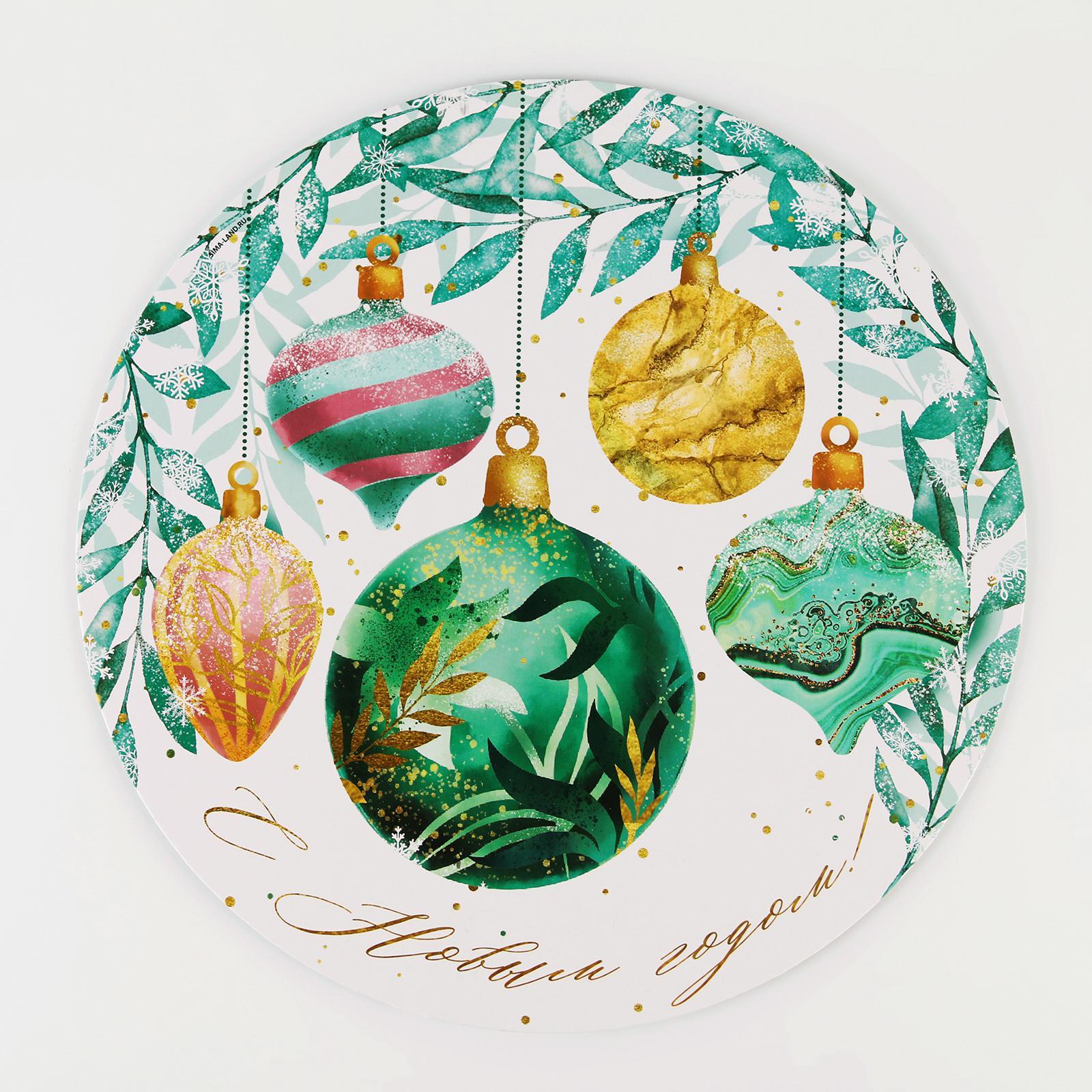 Подложка под торт усиленная «с новым годом», 28 см, 2 мм. Цвет:Зелёный|Цвет:Белый|Цвет:Бирюзовый|Форма:Круглая|Размер, см:28 х 28|Длина, см:28|Ширина, см:28|Высота, см:0.32|Толщина, мм:2|Тематика:Новогодняя|Тематика:Шары|Тематика праздника:Новый год|Материал:Картон|Вид еды:Для тортов|Тип подложки:Односторонняя|Страна:Китай  развернуть описание ▼