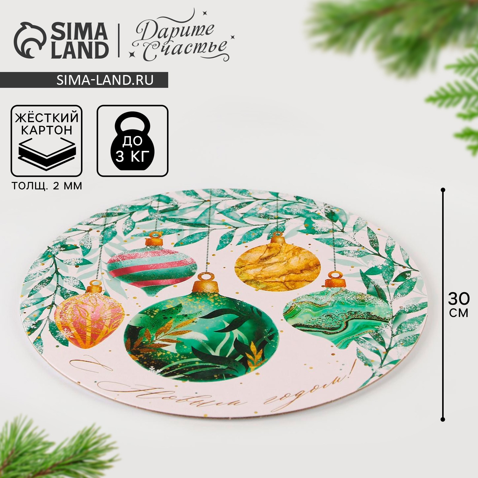 Подложка под торт усиленная «с новым годом», 30 см, 2 мм. Цвет:Белый|Цвет:Бирюзовый|Цвет:Зелёный|Форма:Круглая|Размер, см:30 х 30|Длина, см:30|Ширина, см:30|Высота, см:0.32|Толщина, мм:2|Тематика:Шары|Тематика:Новогодняя|Тематика праздника:Новый год|Материал:Картон|Вид еды:Для тортов|Тип подложки:Односторонняя|Страна:Китай  развернуть описание ▼