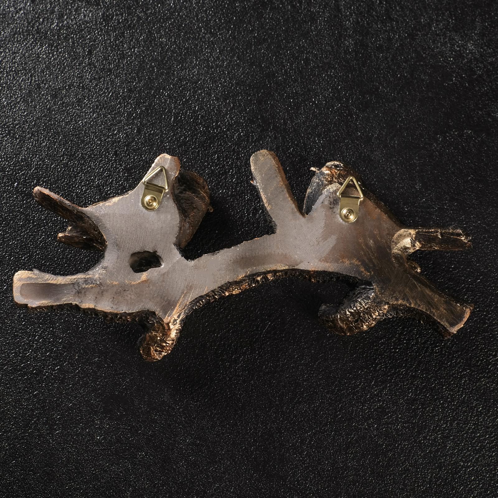 Вешалка - ключница "веточка с двумя птичками" бронза. Количество крючков: 3 Тематика: Птицы Цвет: Бронза Материал: Полистоун Вид установки: Настенный (навесной) С полочкой: Нет Температурное ограничение: Нет Особенности: Без особенностей Можно оставлять зимой на улице: Да  развернуть описание ▼