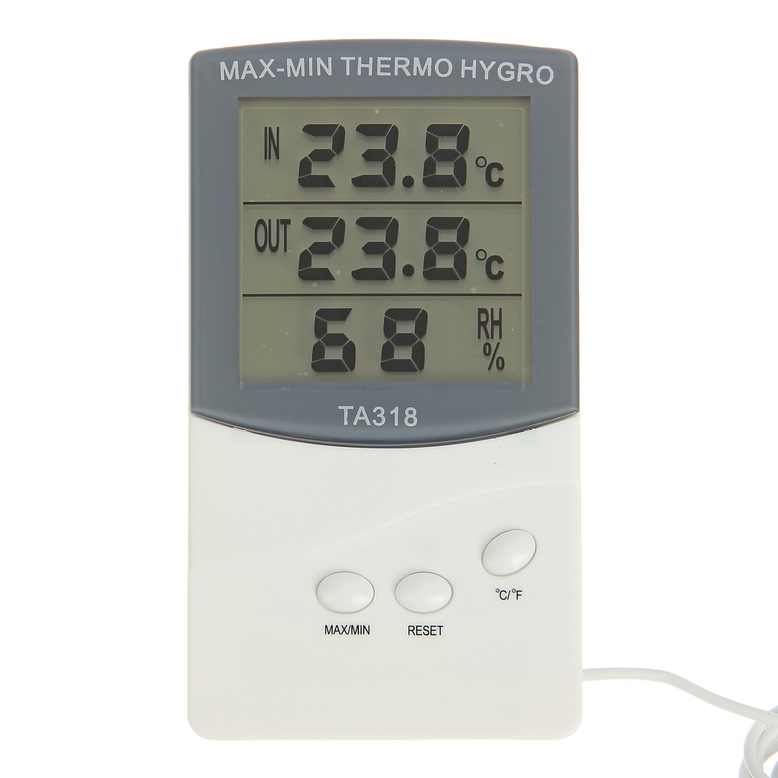 Термометр электронный luazon ltr-07, 2 датчика температуры, датчик влажности, белый. Электронный термометр с двумя датчиками температуры - уникальное устройство, которое позволит отследить все параметры текущей метеообстановки, проинформирует пользователя о текущей погоде на улице, а также измерит температуру внутри помещения. Некоторые термометры способны определять влажность воздуха и атмосферное давление. Тип питания:От батареек|Цвет:Белый|Количество батареек:1|Гарантийный срок, мес.:6|Материал корпуса:Пластик|Беспроводное соединение:Да|Типоразмер батареек:AAA (LR03)|Гигрометр:Да|Вид:Термометр|Выносной датчик:Да|Функции:Влажность|Функции:Температура в комнате|Жидкостный:Нет|Назначение:Комнатный|Страна:Китай  развернуть описание ▼