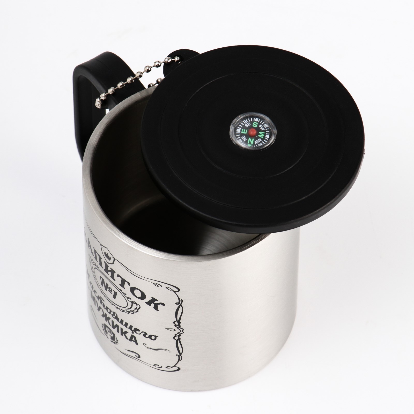 Термокружка, 180 мл, туризм "напиток мужика", сохраняет тепло 2 ч, компас, хром