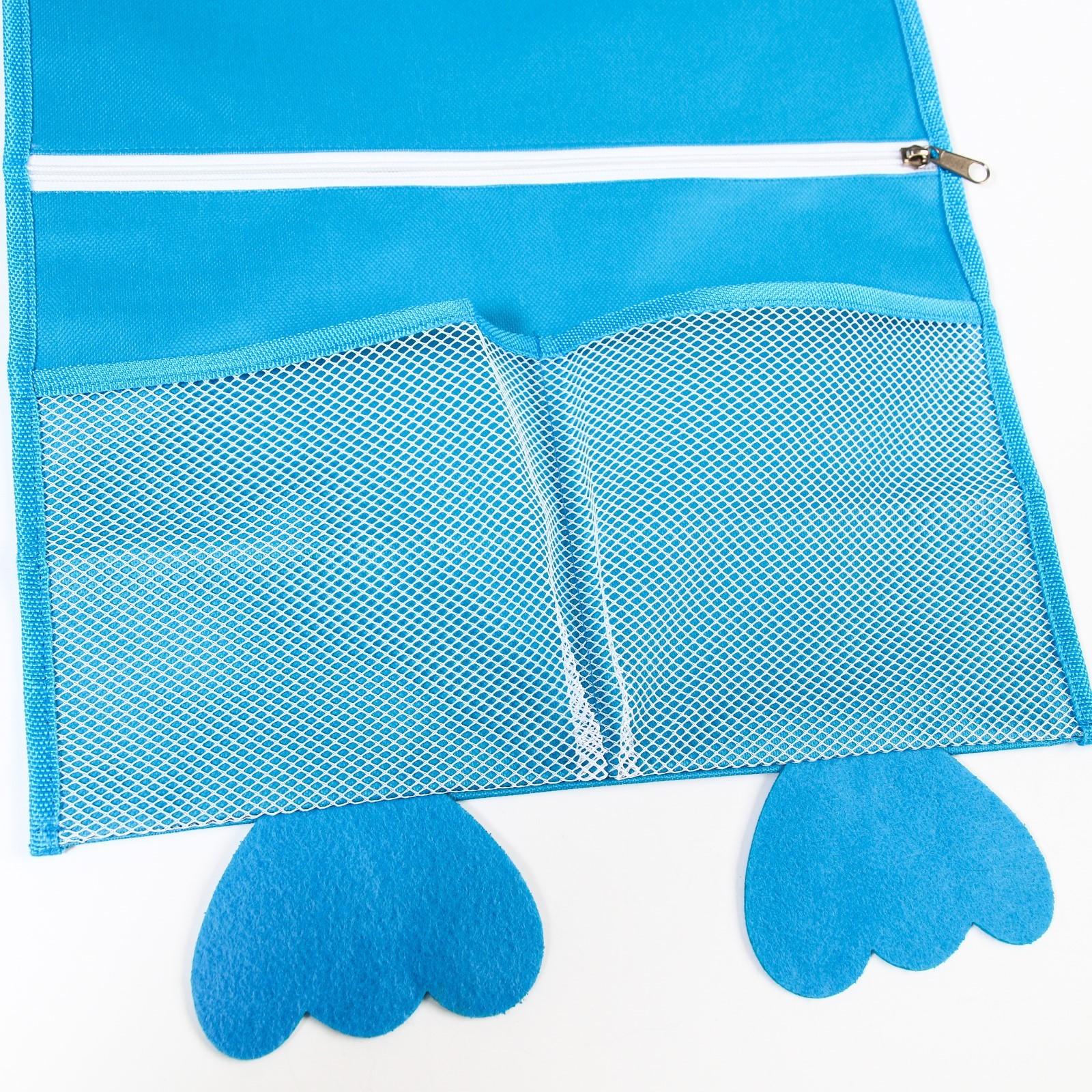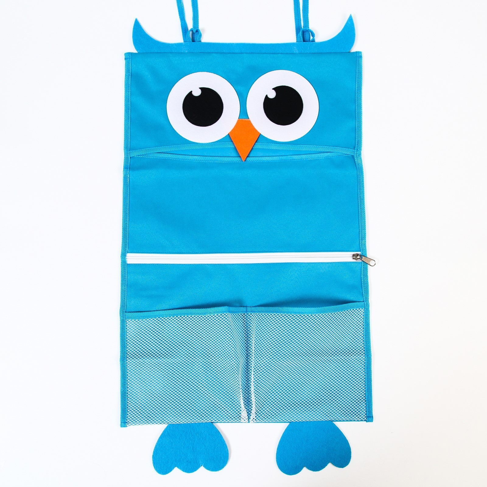 Сетка для хранения игрушек в ванной на завязках «сова». Сетка для игрушек поможет хранить детские принадлежности и игрушки в чистоте и свободном доступе. Изделие выполнено из прочного материала и крепится к стене с помощью двух присосок. Цвет: Голубой Для кого: Для мальчика Ширина, см: 37 Высота, см: 58 Количество отделений: 4 Материал: Полиэстер  развернуть описание ▼
