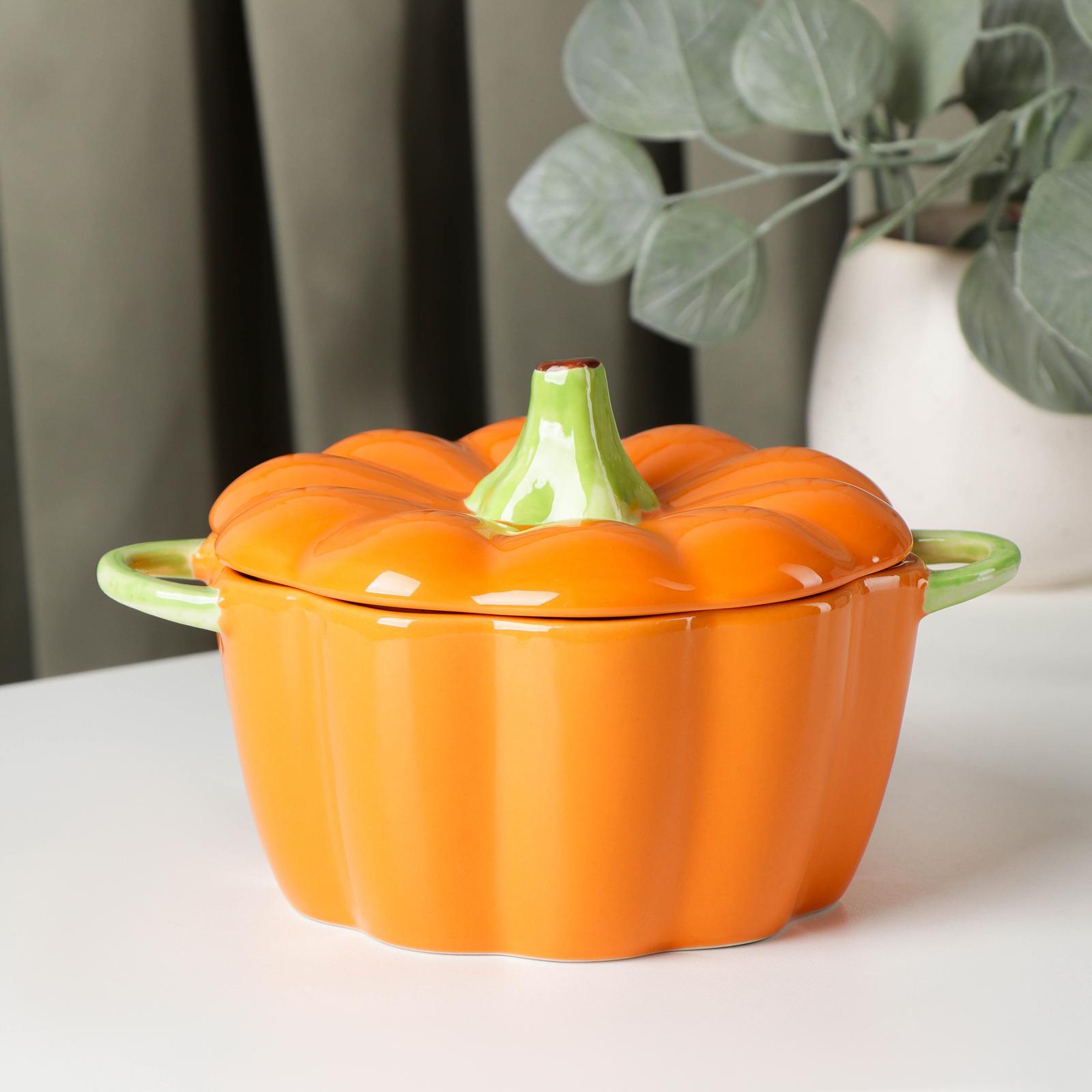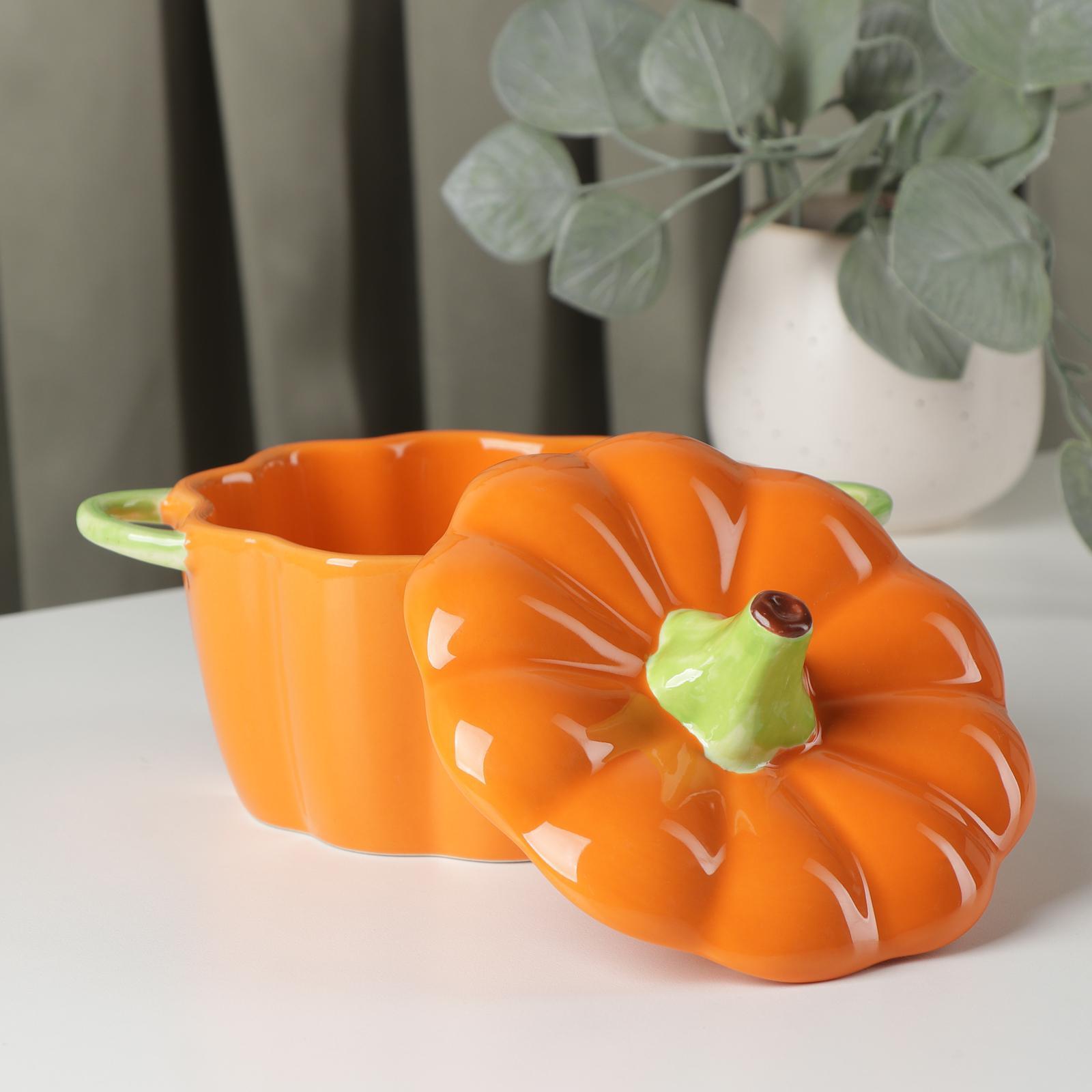 Горшочек из жаропрочной керамики для запекания «тыква», 650 мл, 18,5x14x11 см, посуда для хэллоуина, цвет оранжевый