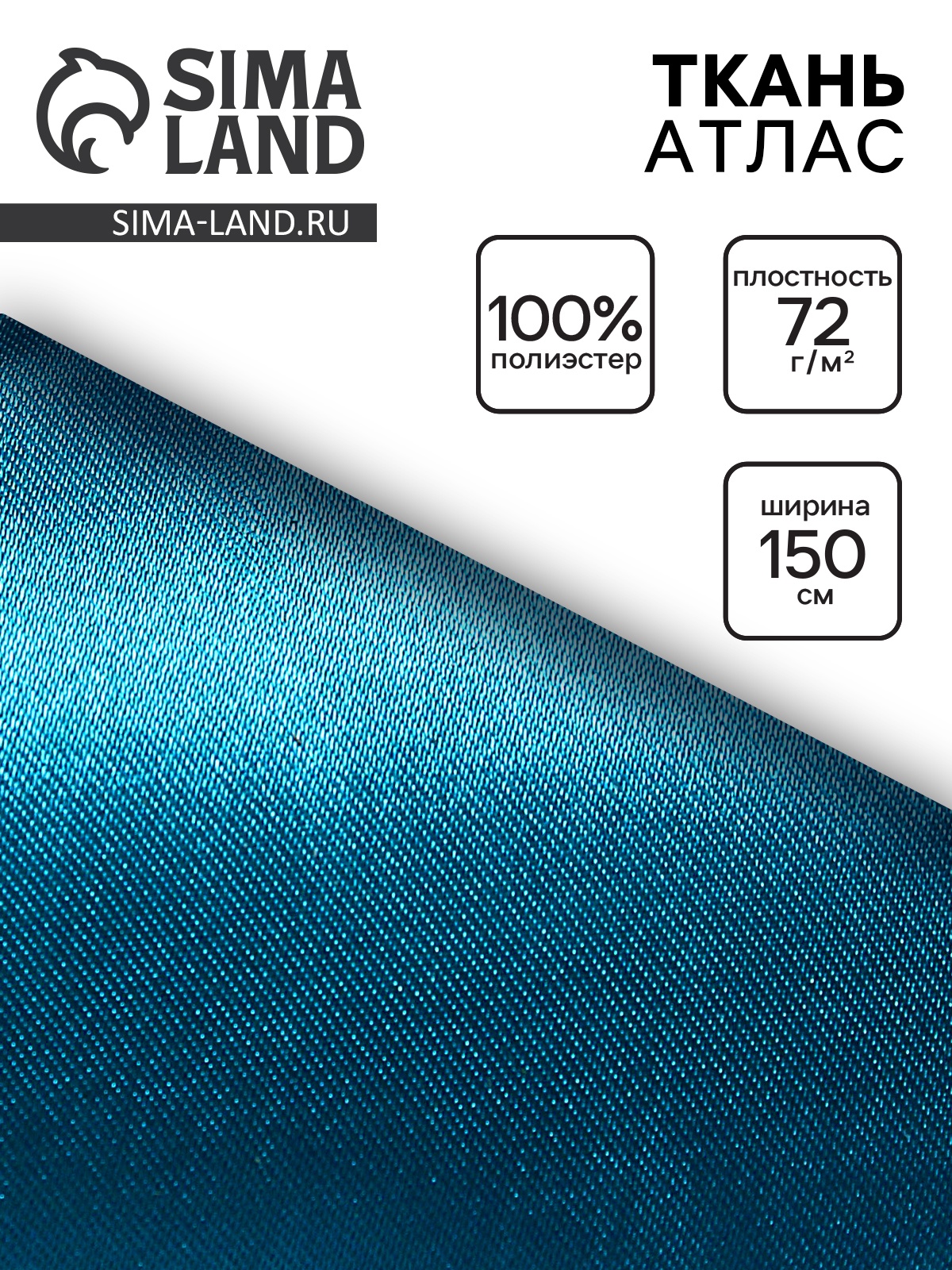 Ткань атлас для рукоделия и шитья, морская волна, ширина 150 см Ткань атлас для рукоделия и шитья, морская волна, ширина 150 см