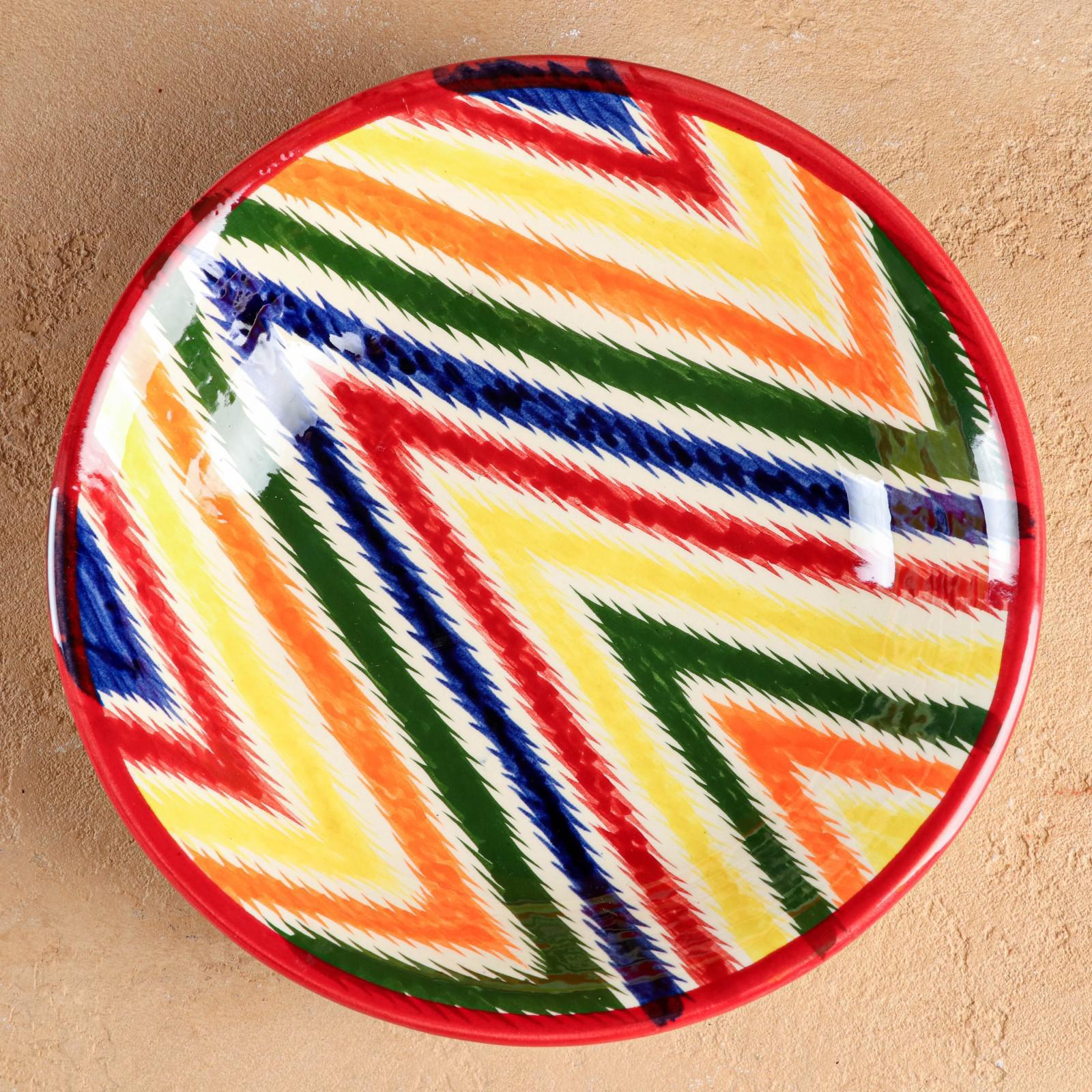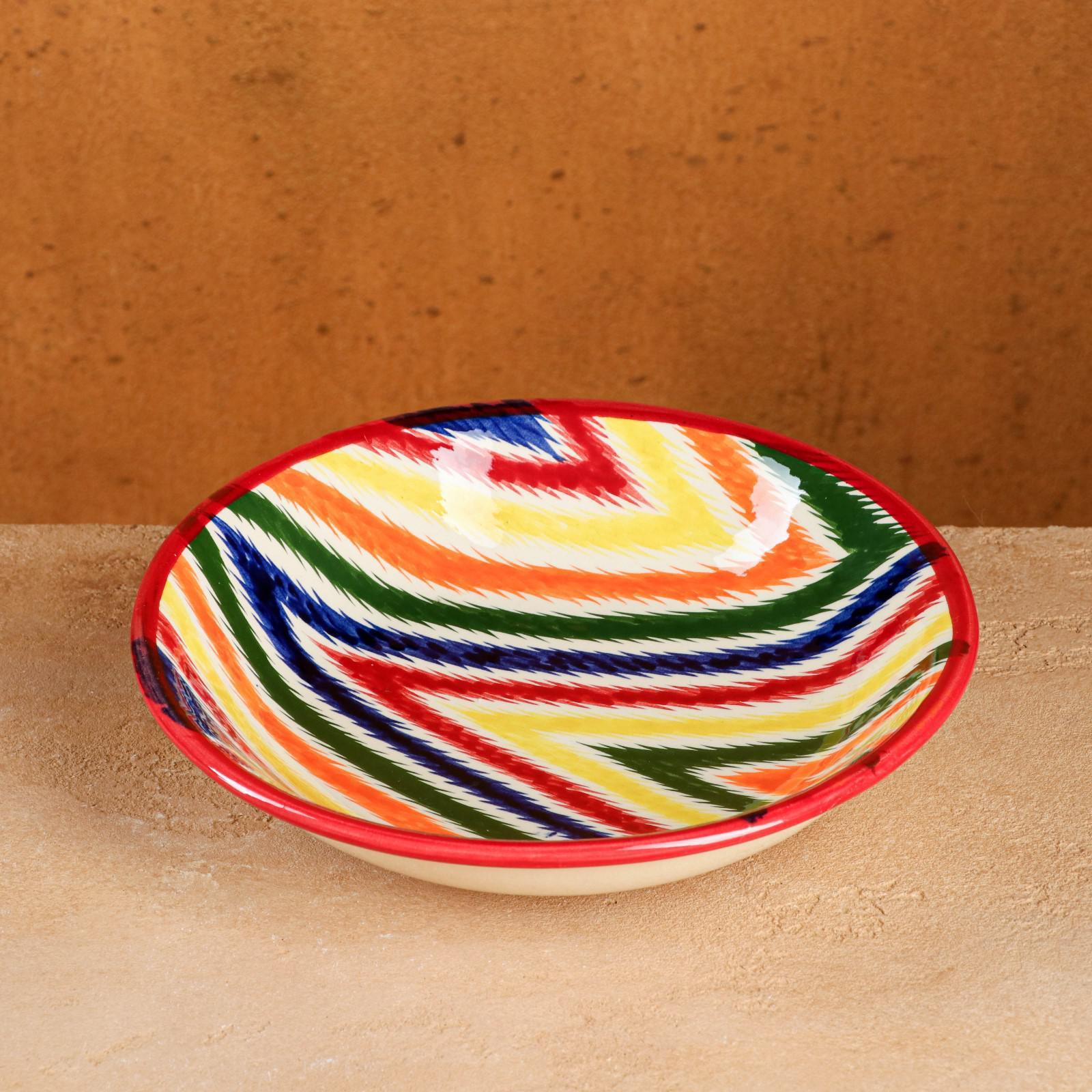 Тарелка риштанская керамика "атлас", разноцветная, глубокая, 20 см