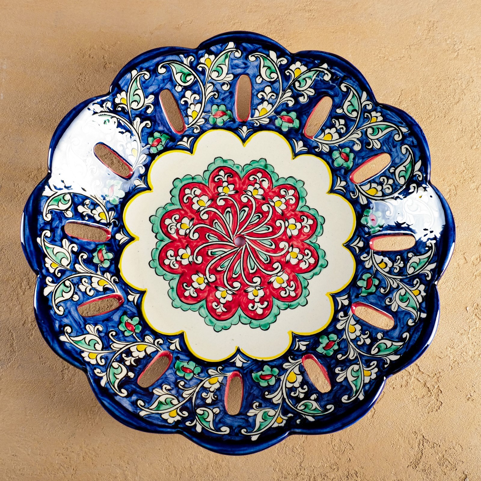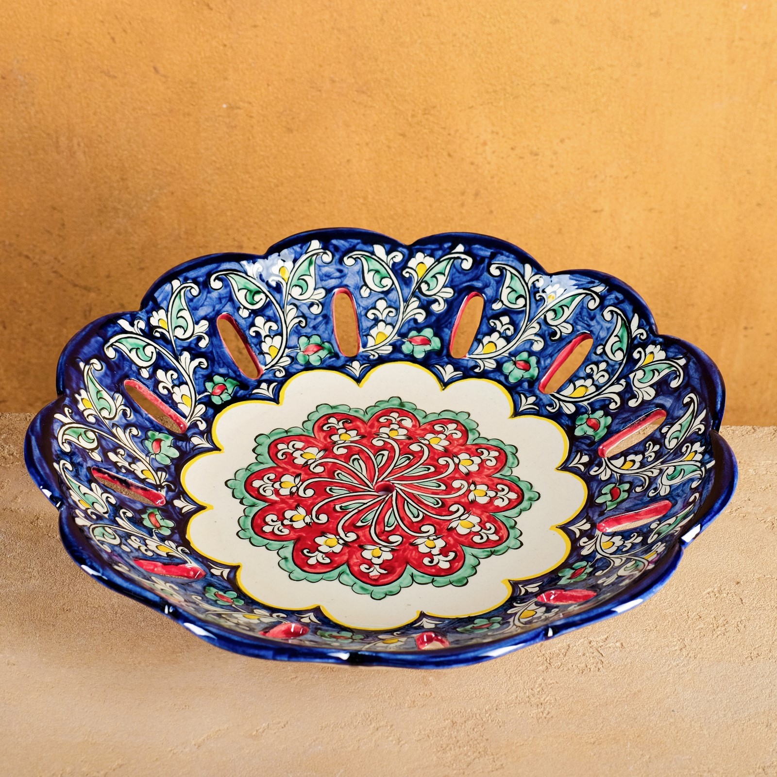 Фруктовница риштанская керамика "цветы", 33 см, синяя