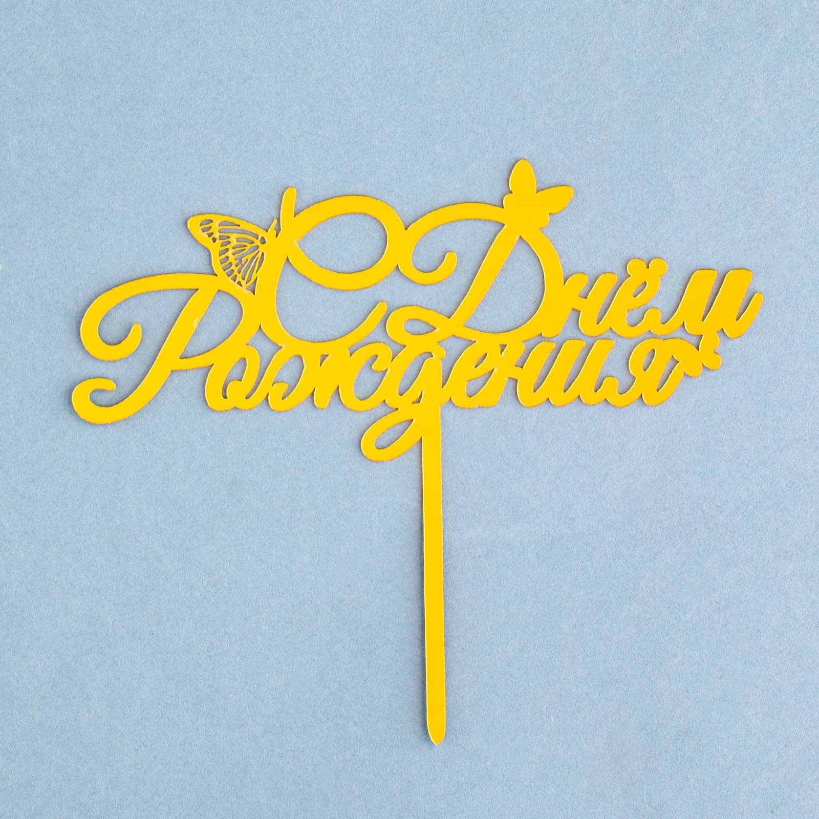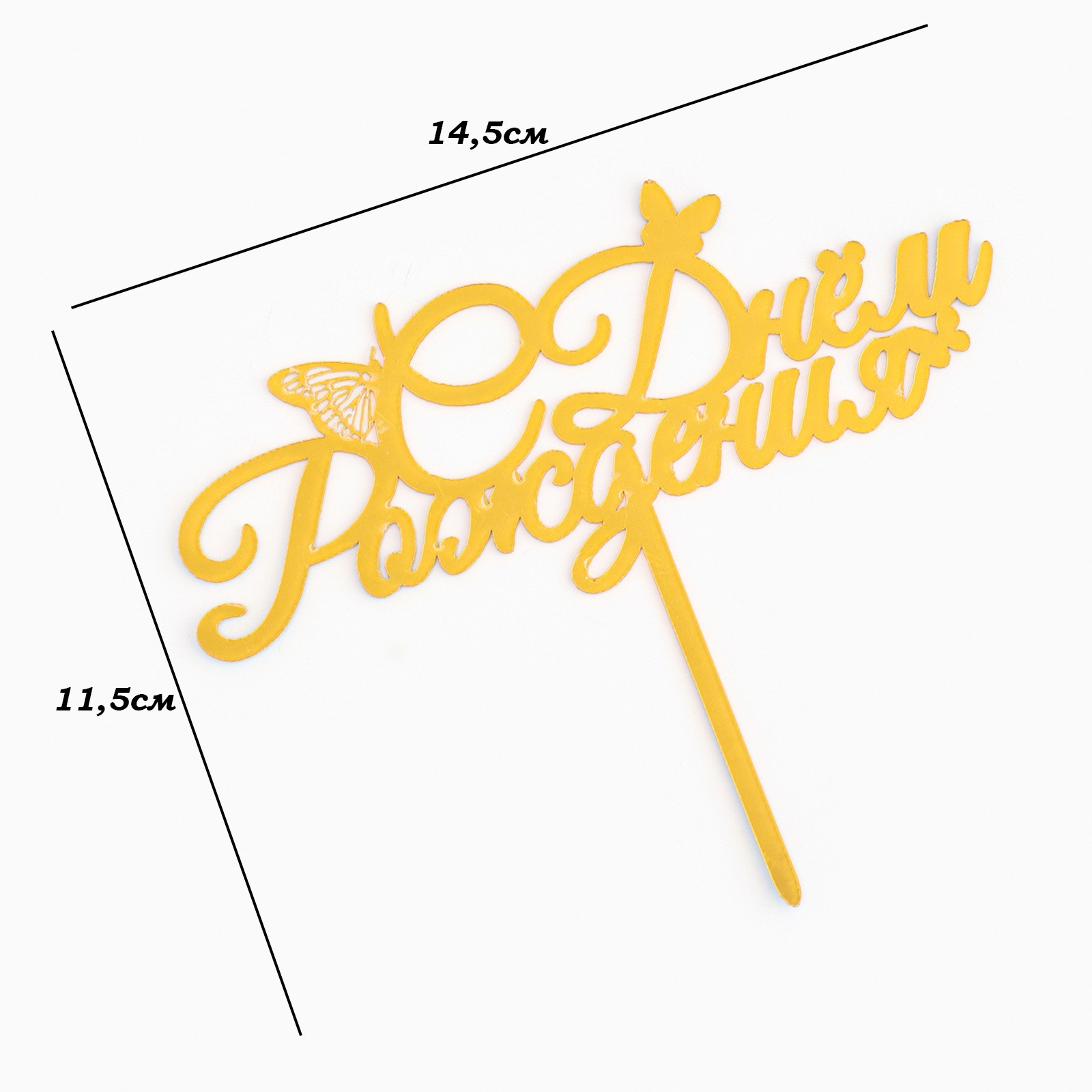 Топпер "с днем рождения" с бабочками, золотой, дарим красиво