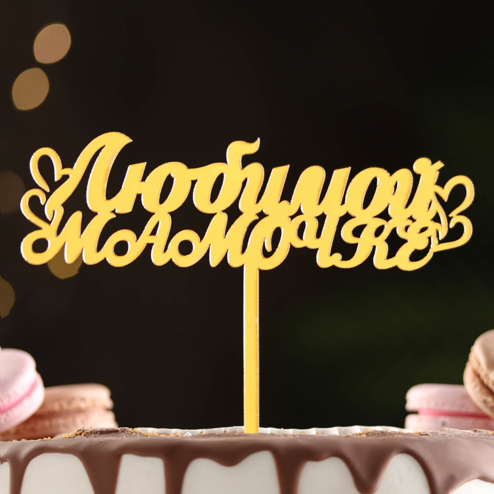 Топпер "любимой мамочке" с сердечками, золотой, дарим красиво