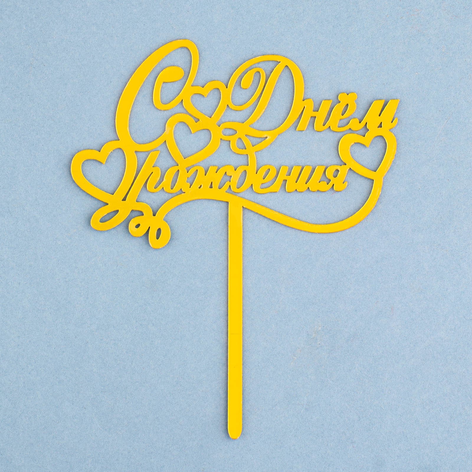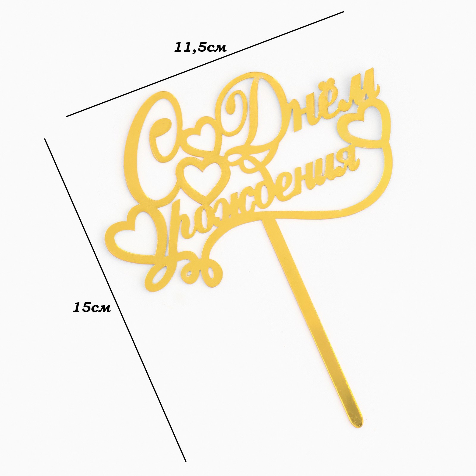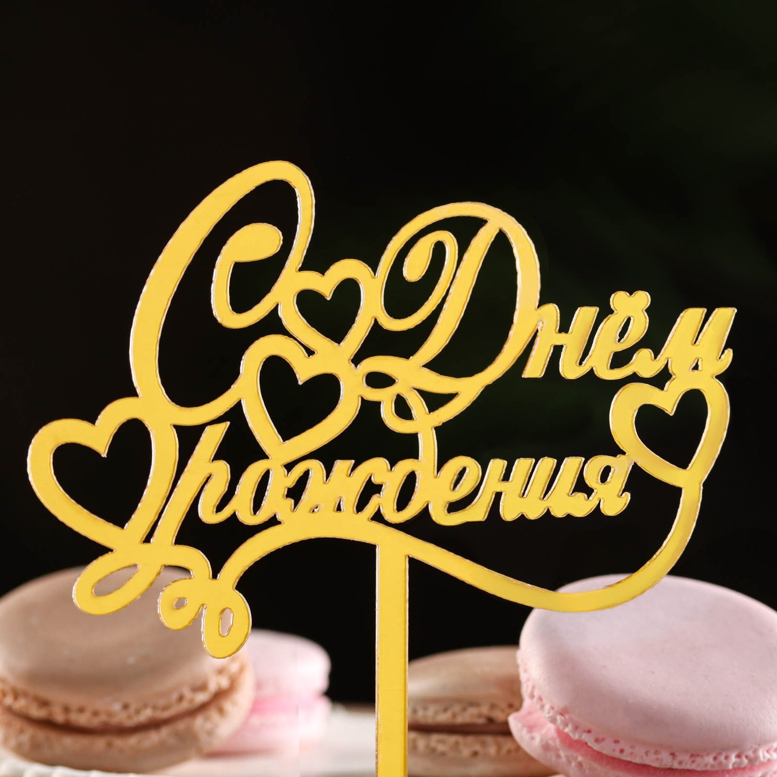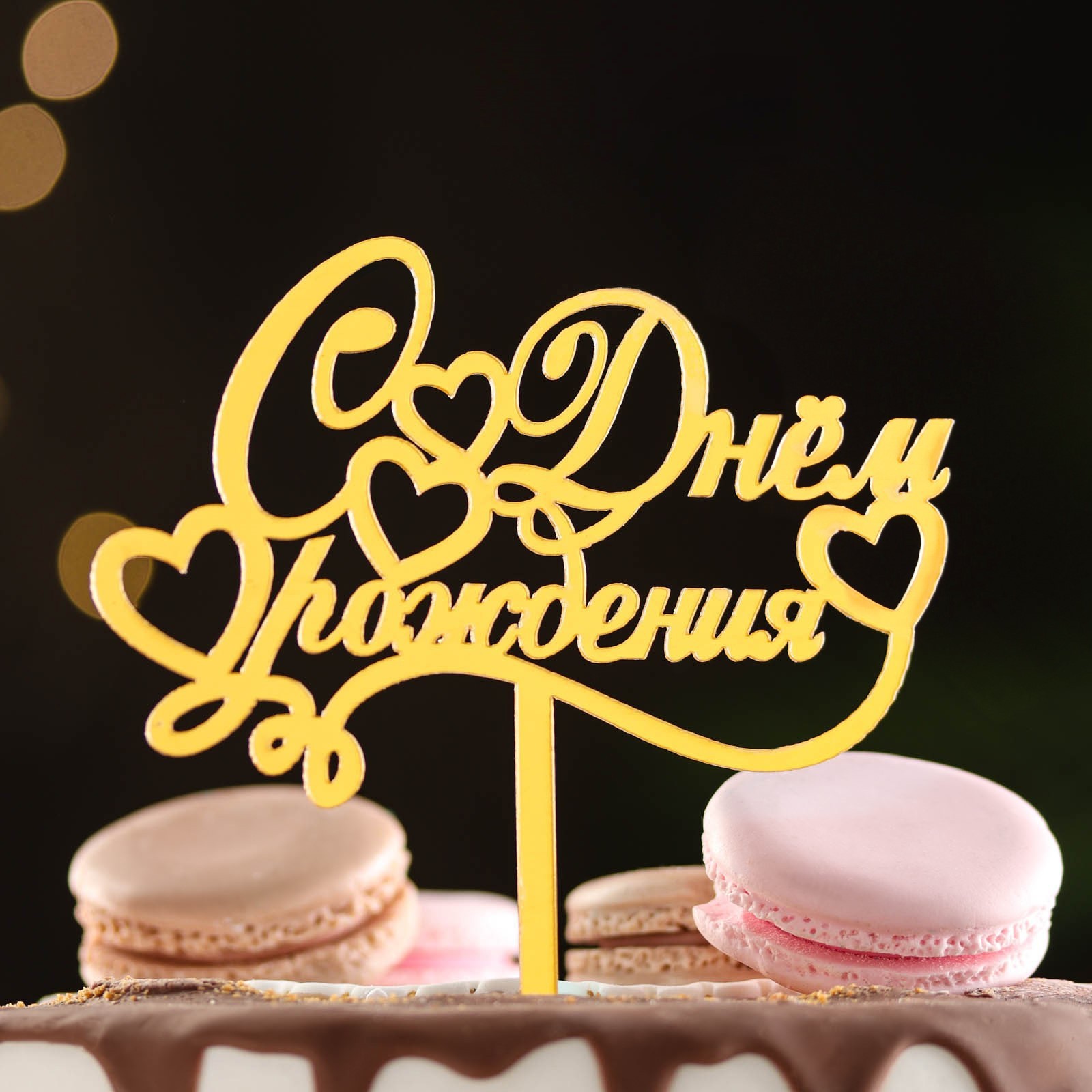 Топпер "с днем рождения", курсив, золотой, дарим красиво