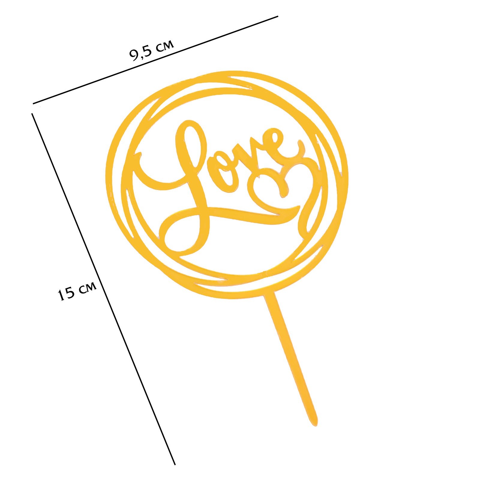 Топпер "Love", круг с сердцем, золото, дарим красиво