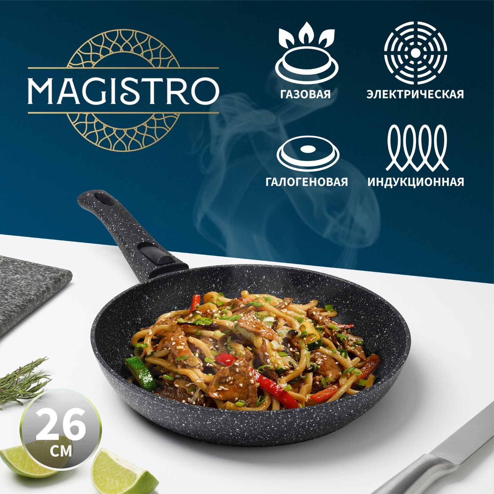 Сковорода кованая Magistro Dark, D=26 см, съёмная ручка Soft-touch, антипригарное покрытие, индукция, цвет чёрный