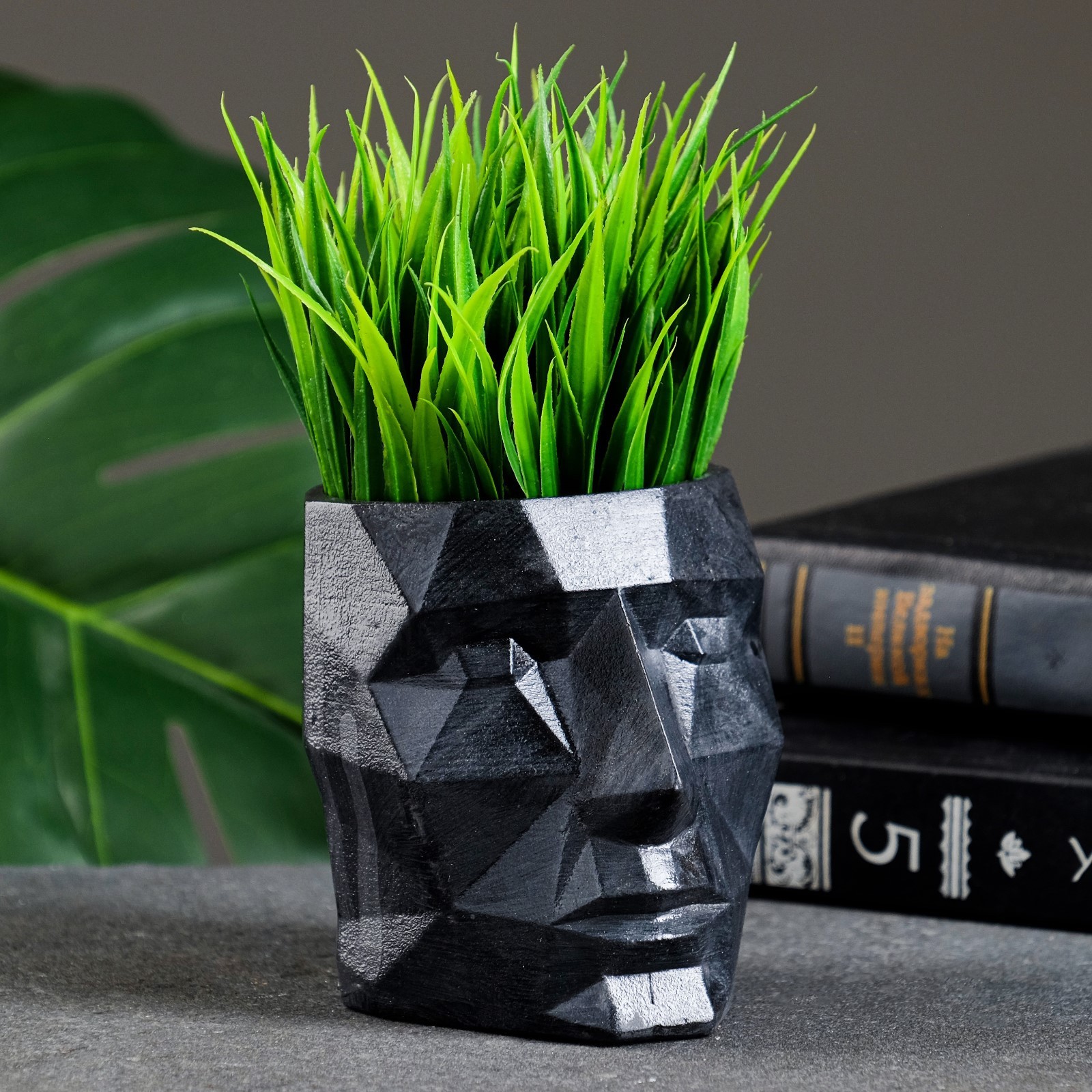 Фигурное кашпо для цветов «геометрическая голова», 150 мл, 7.5 8.5 7 см, гипс, чёрное