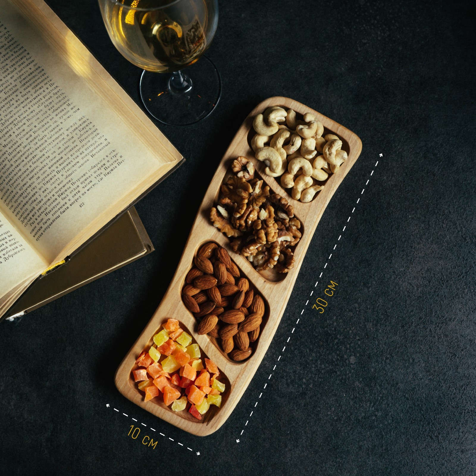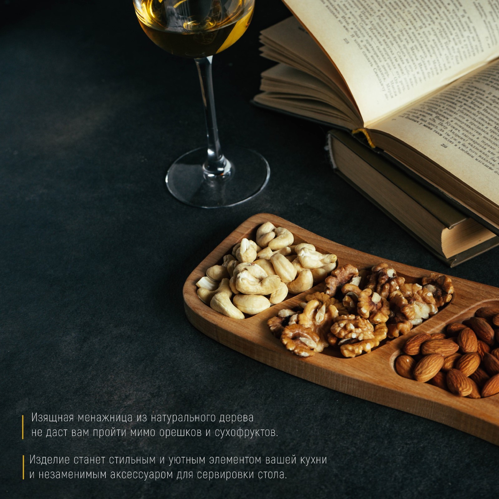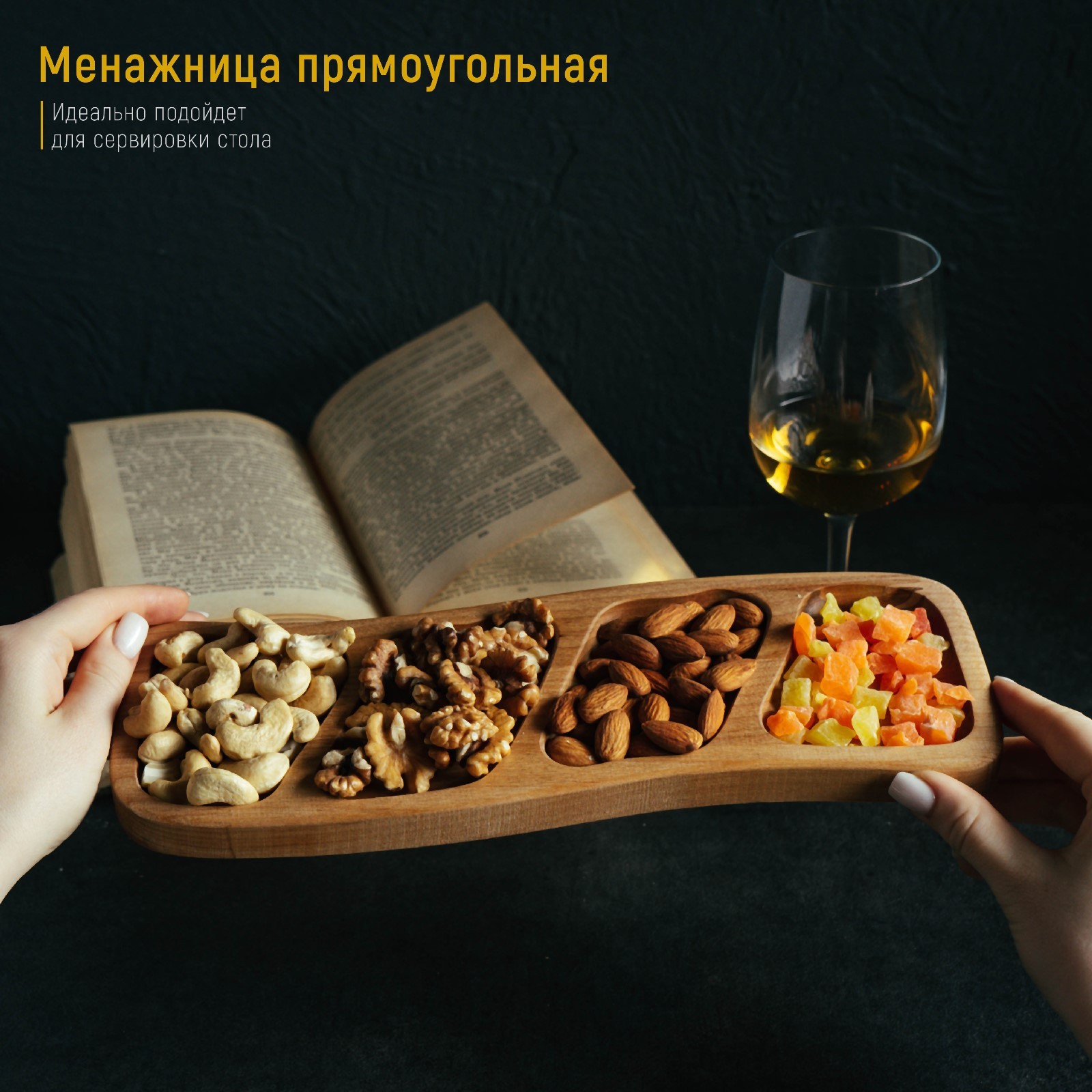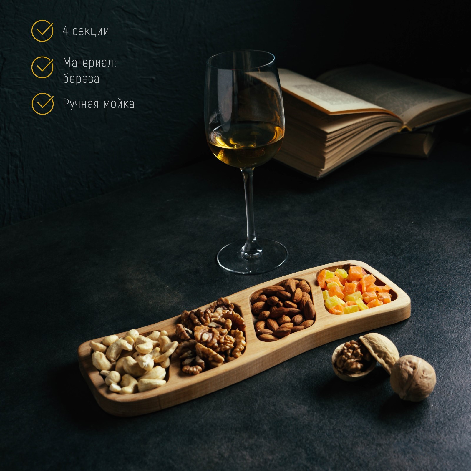 Менажница прямоугольная доляна, 30x10x1,8 см, 4 секции, берёза