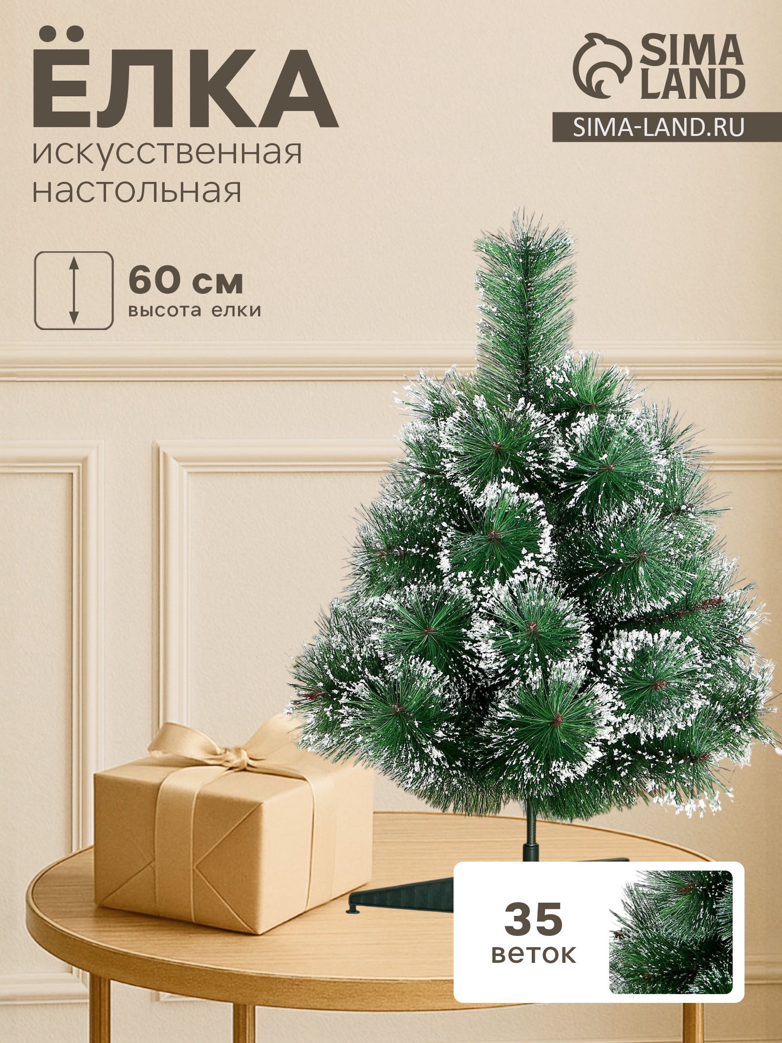 Искусственная ёлка настольная «зимнее волшебство. кедр с инеем», 60 см, D иголок 10 см, 35 веток отгибаются