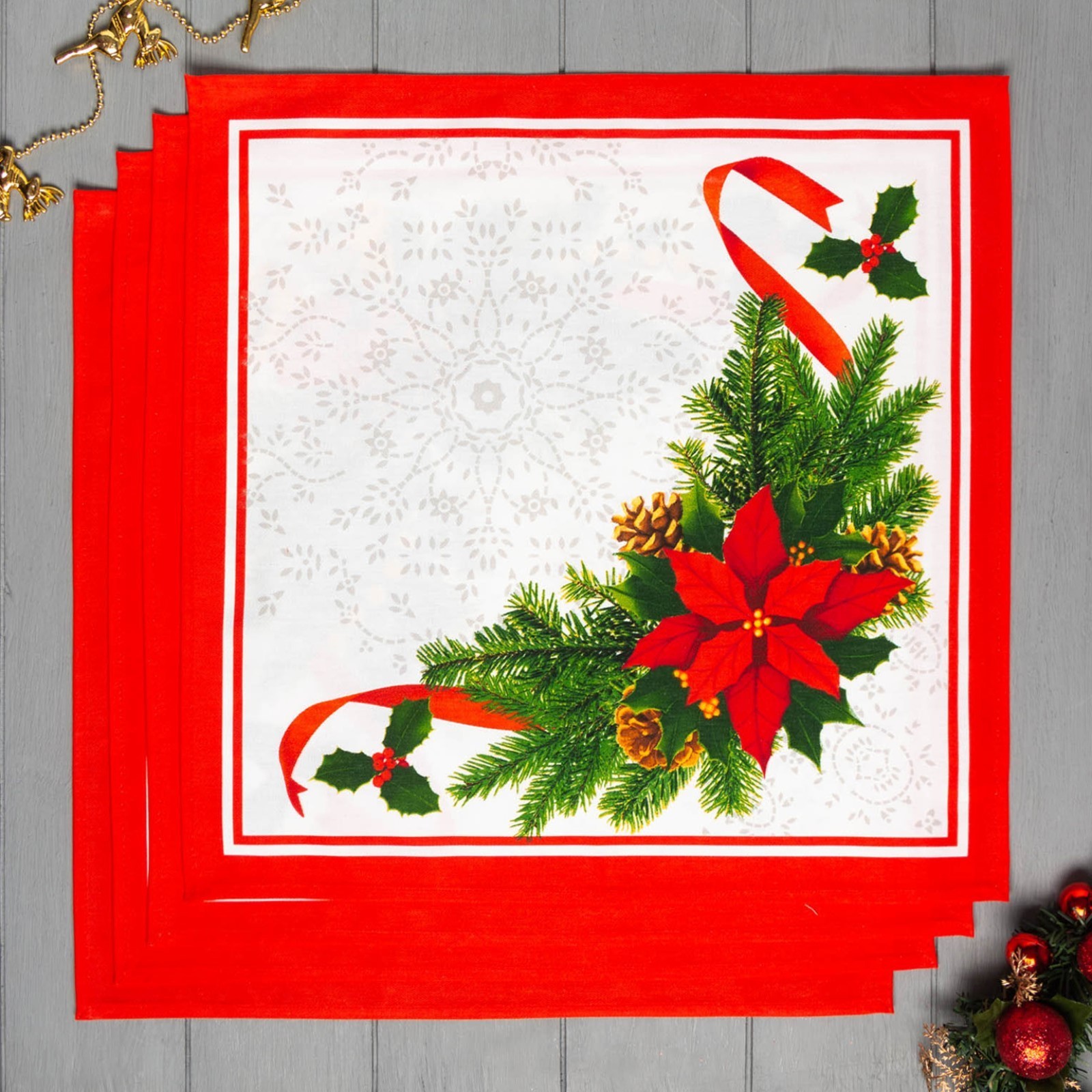 Набор салфеток "этель" рождественский бал 40х40см 4 шт, 100% хл, саржа 190 гр/м2