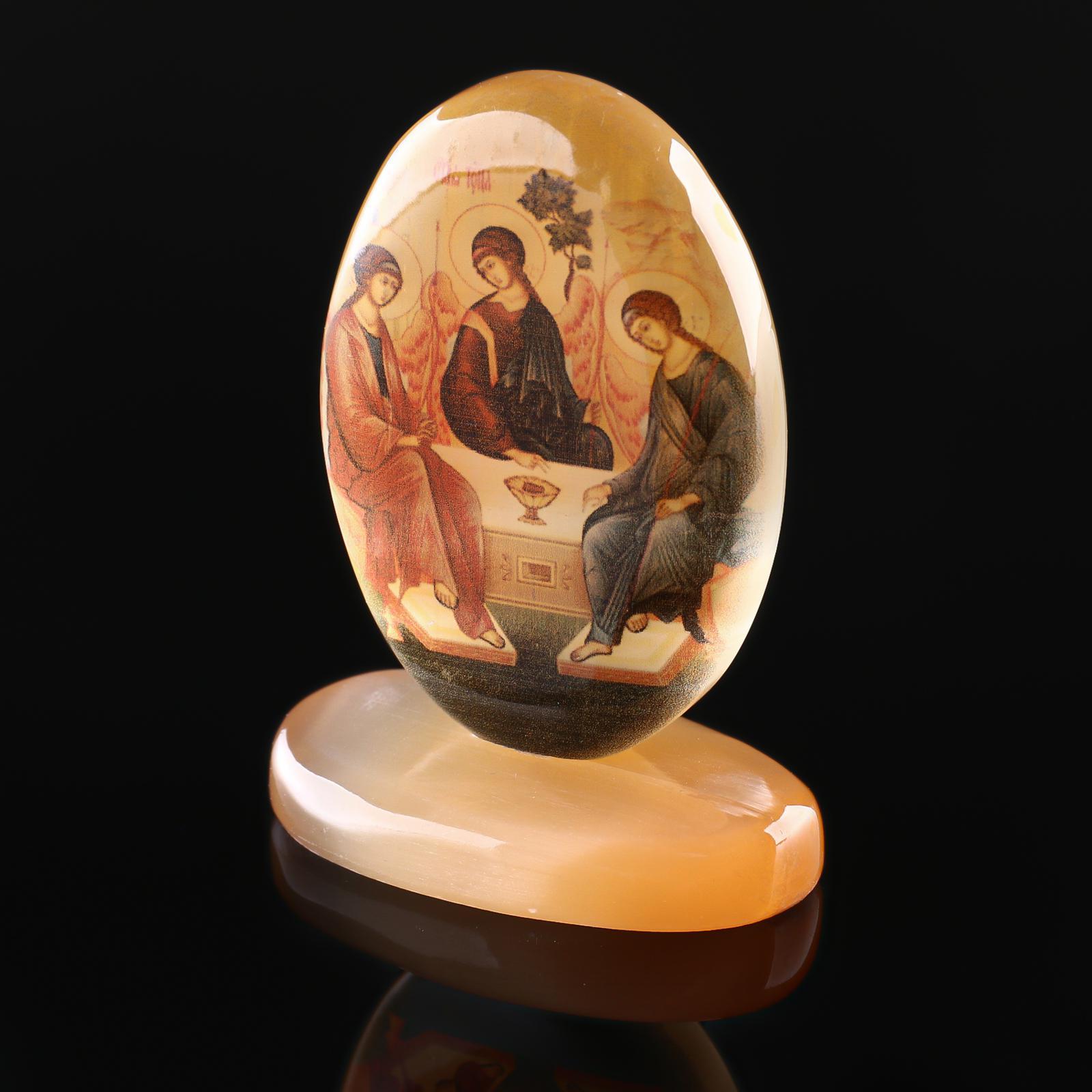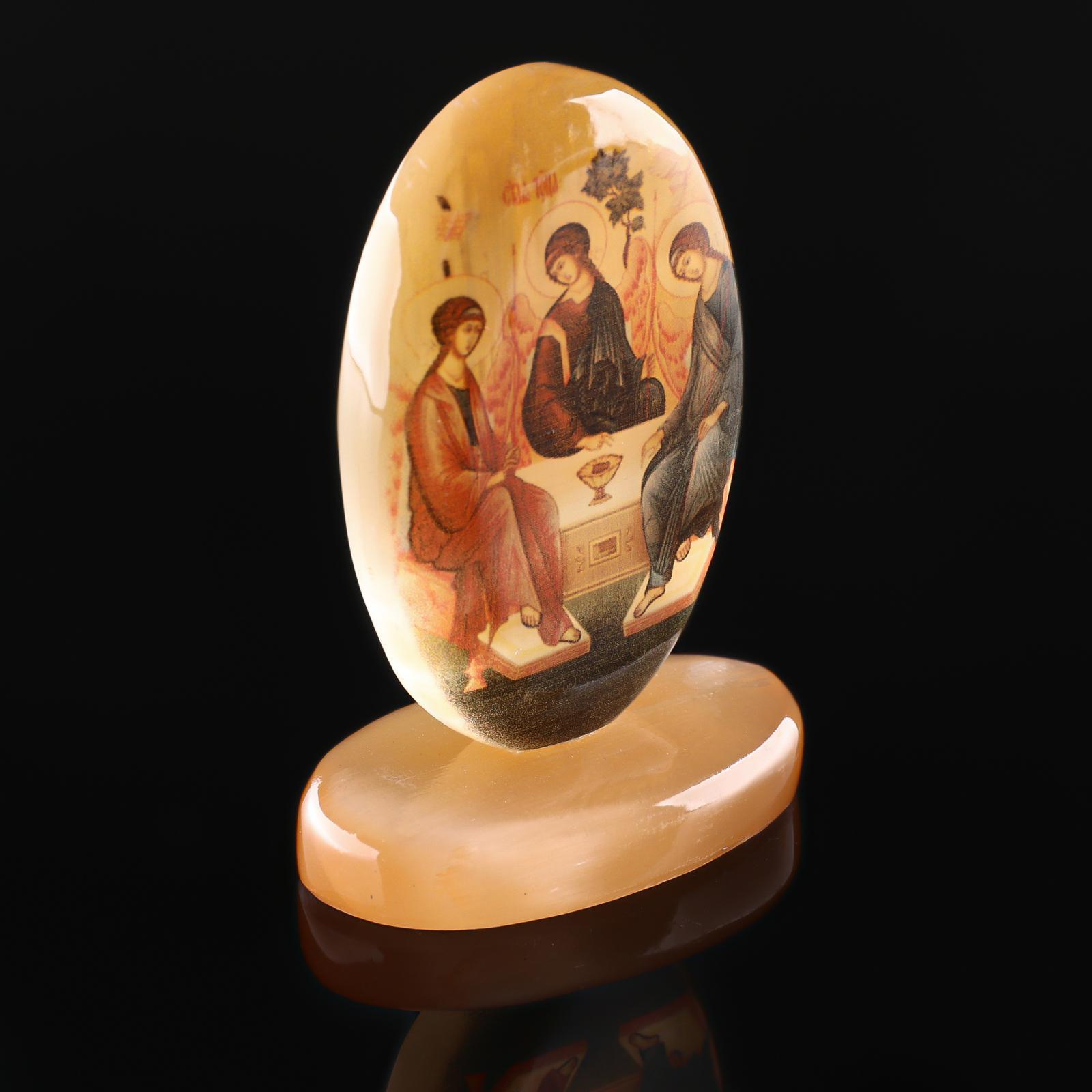 Икона «святая троица», овал на поставке с фоном, настольная, селенит