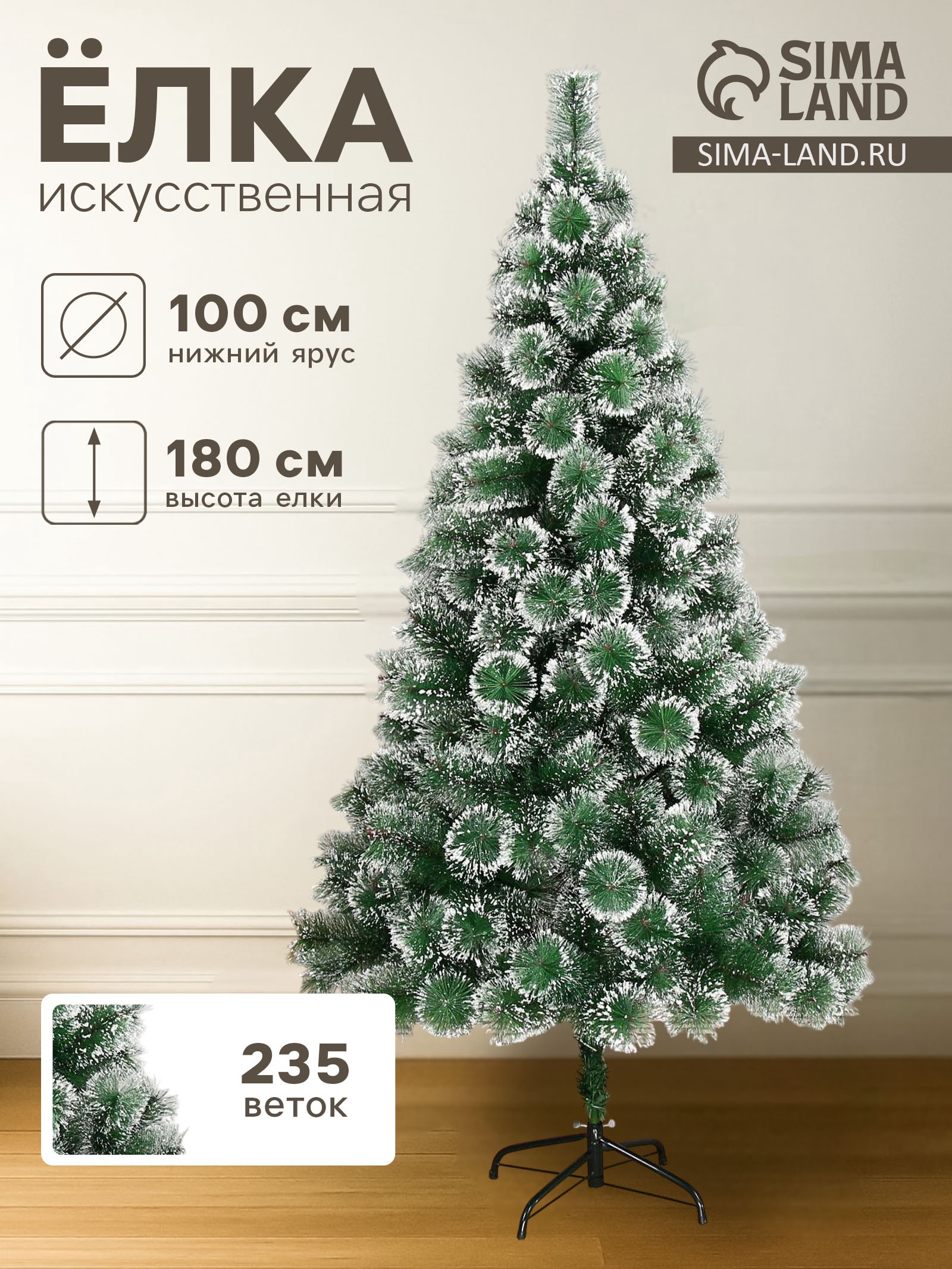 Искусственная ёлка с инеем «зимнее волшебство. кедр зелёный», 180 см, D иголок 10 см, 235 веток