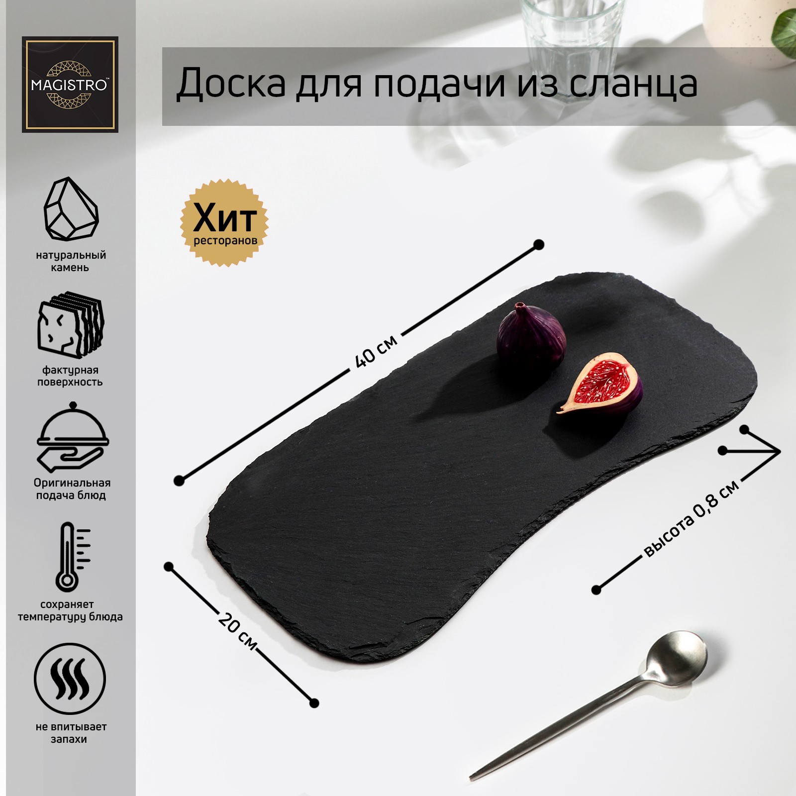 Доска для подачи из сланца Magistro Valley, 20x40 см