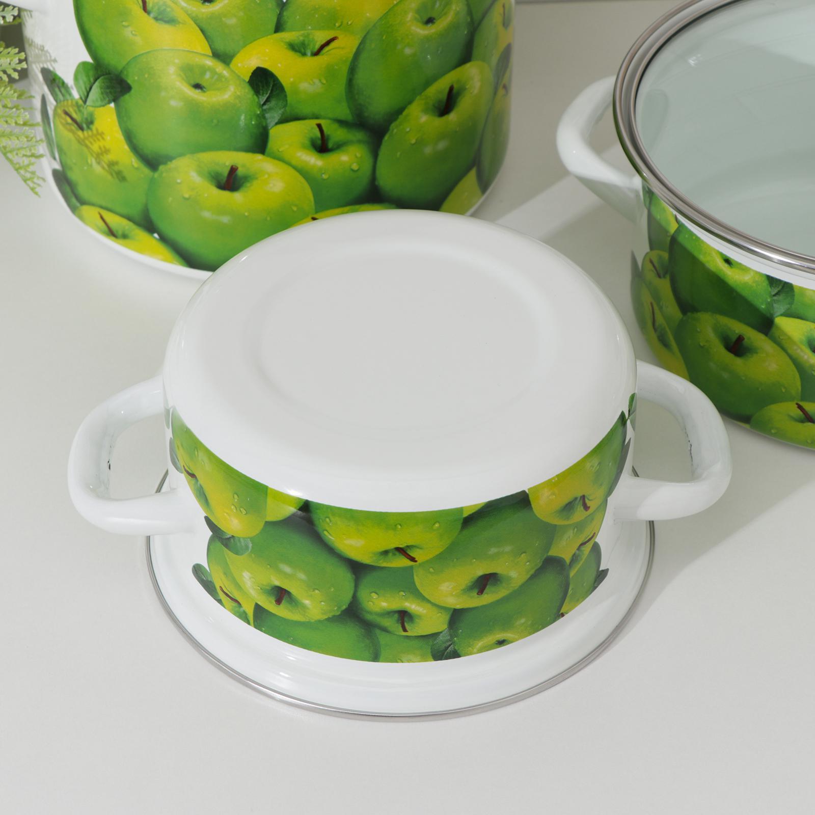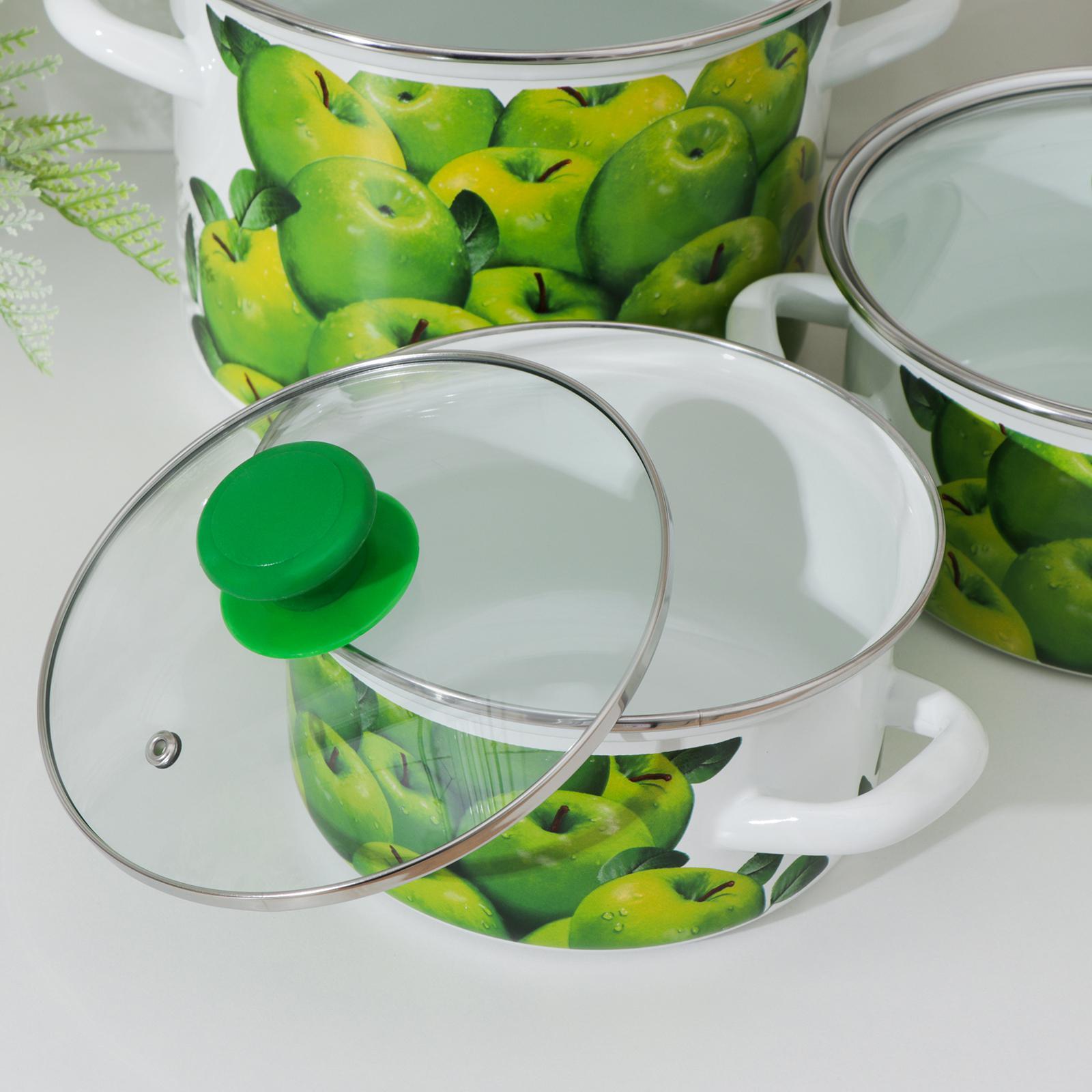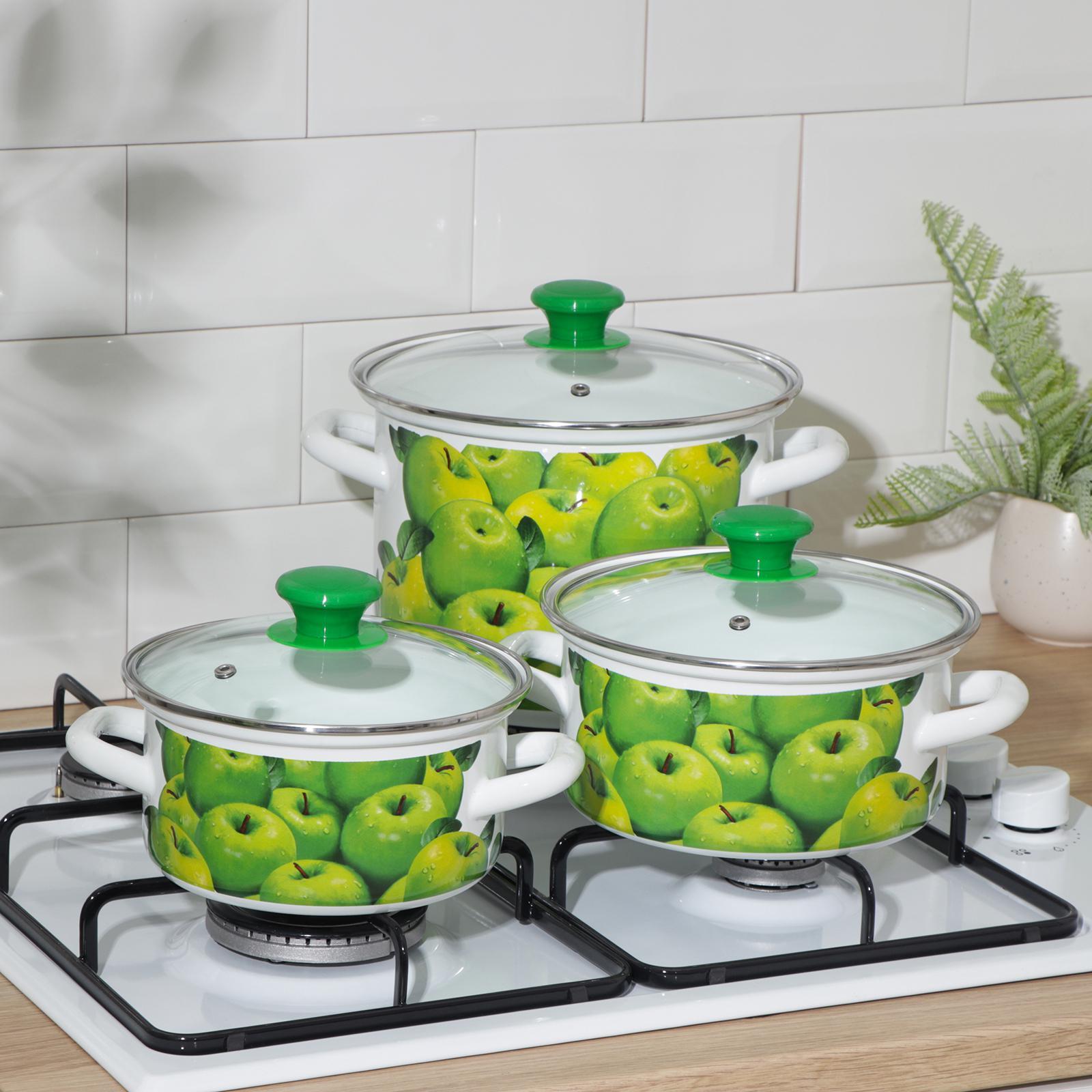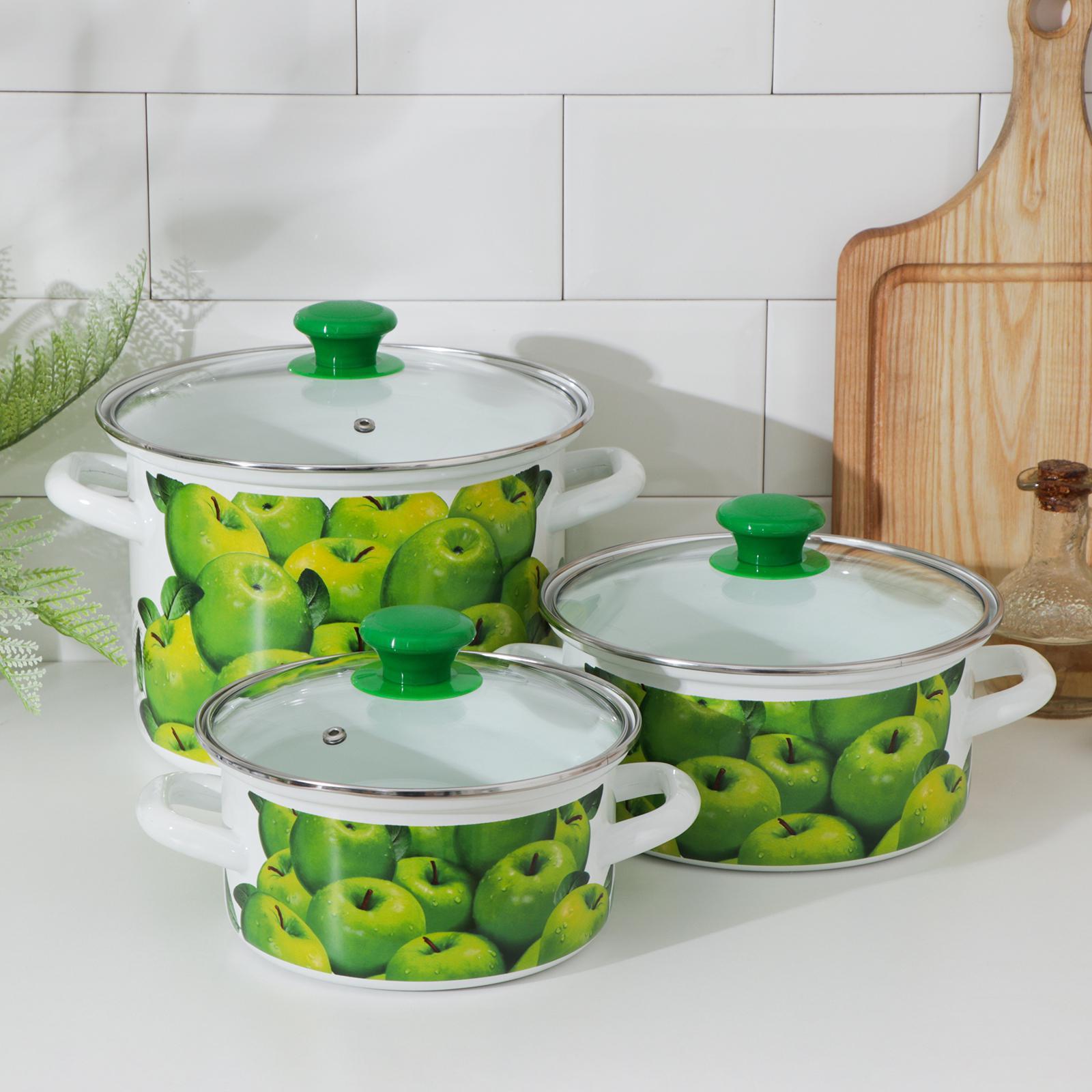Набор кастрюль «поздние яблоки», 3 предмета: 1,5 л, 2,3 л, 5 л, стеклянные крышки, индукция
