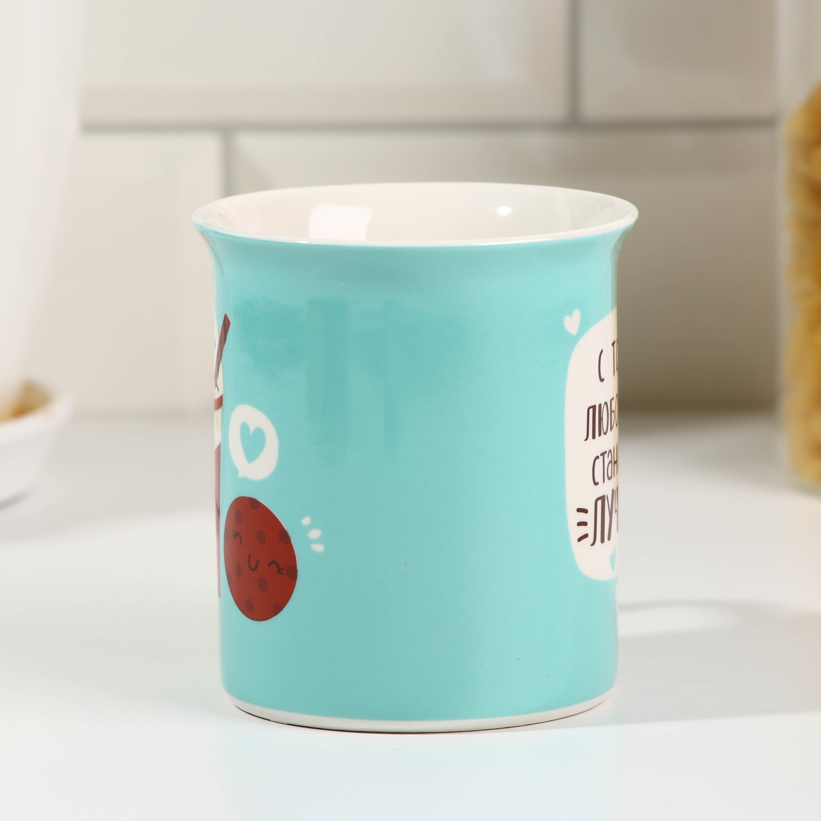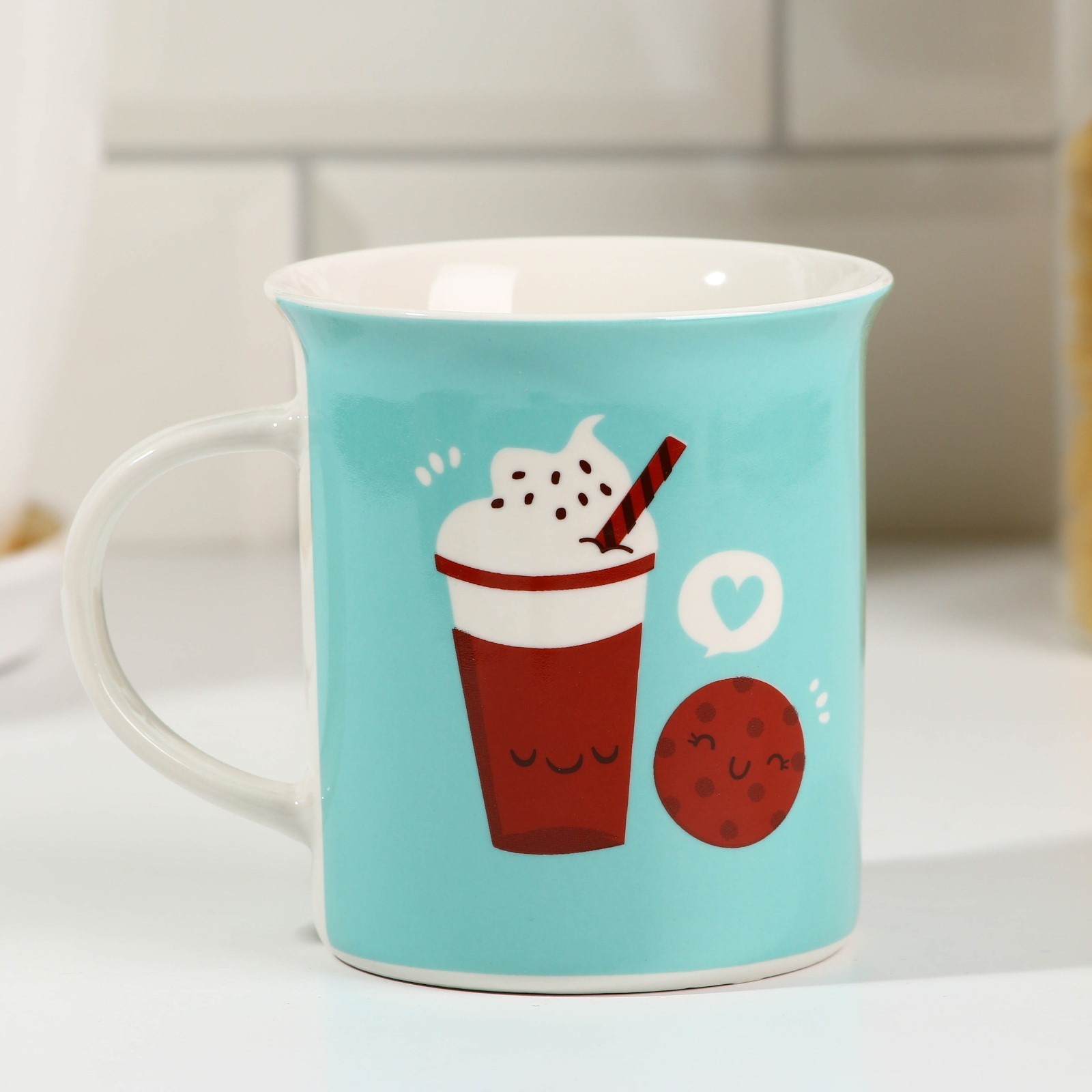 Кружка керамическая «какао и печенька», 300 мл, цвет голубой