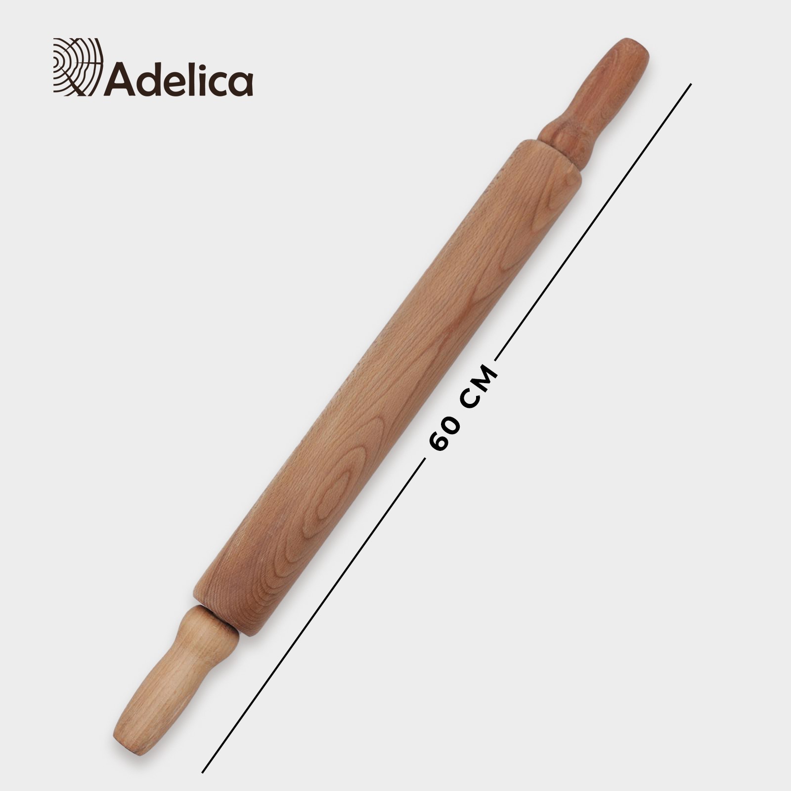 Скалка Adelica «для профи», с вращающейся ручкой, 60x6 см, бук